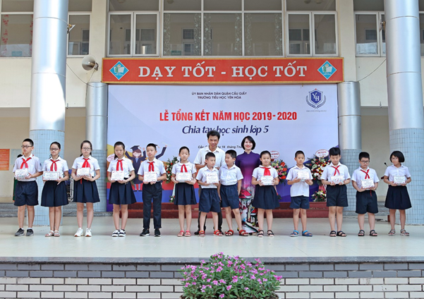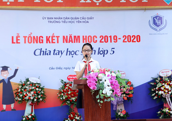 Sau lễ Bế giảng là Lễ chia tay các em học sinh lớp 5 (niên khoá 2015 – 2020). Buổi lễ đã thực sự đánh dấu một cột mốc quan trọng trong quãng đời học sinh đầy tươi đẹp của các em. Trong không khí bâng khuâng và xúc động, đại diện cho các em học sinh lớp 5, em Nguyễn Phương Linh – học sinh lớp 5A đã lên phát biểu cảm nghĩ trong ngày ra trường, bày tỏ lòng tri ân tới thầy cô và hứa sẽ tiếp tục nỗ lực trên con đường học vấn, không phụ lòng kì vọng của cha mẹ và các thầy giáo, cô giáo. Các em học sinh cũng được lắng nghe những lời phát biểu động viên, căn dặn của cô giáo Vũ Thị Ánh Tuyết – Phó Hiệu trưởng nhà trường. Cô đã dành những tình cảm yêu thương, những lời chúc tốt đẹp nhất và sự tin tưởng tuyệt đối cho các em học sinh khối 5 sau khi ra trường sẽ tiếp tục nối dài truyền thống vẻ vang của trường Tiểu học Yên Hoà ở những ngôi trường mới.