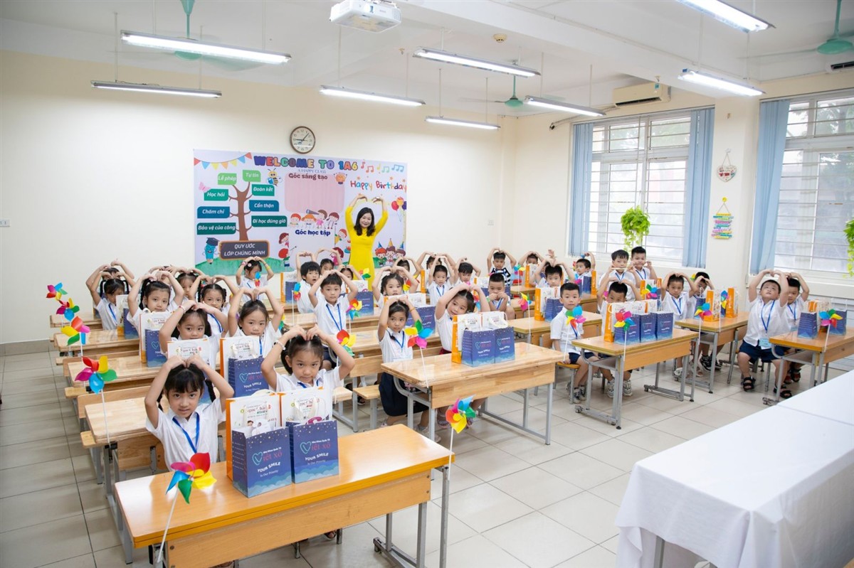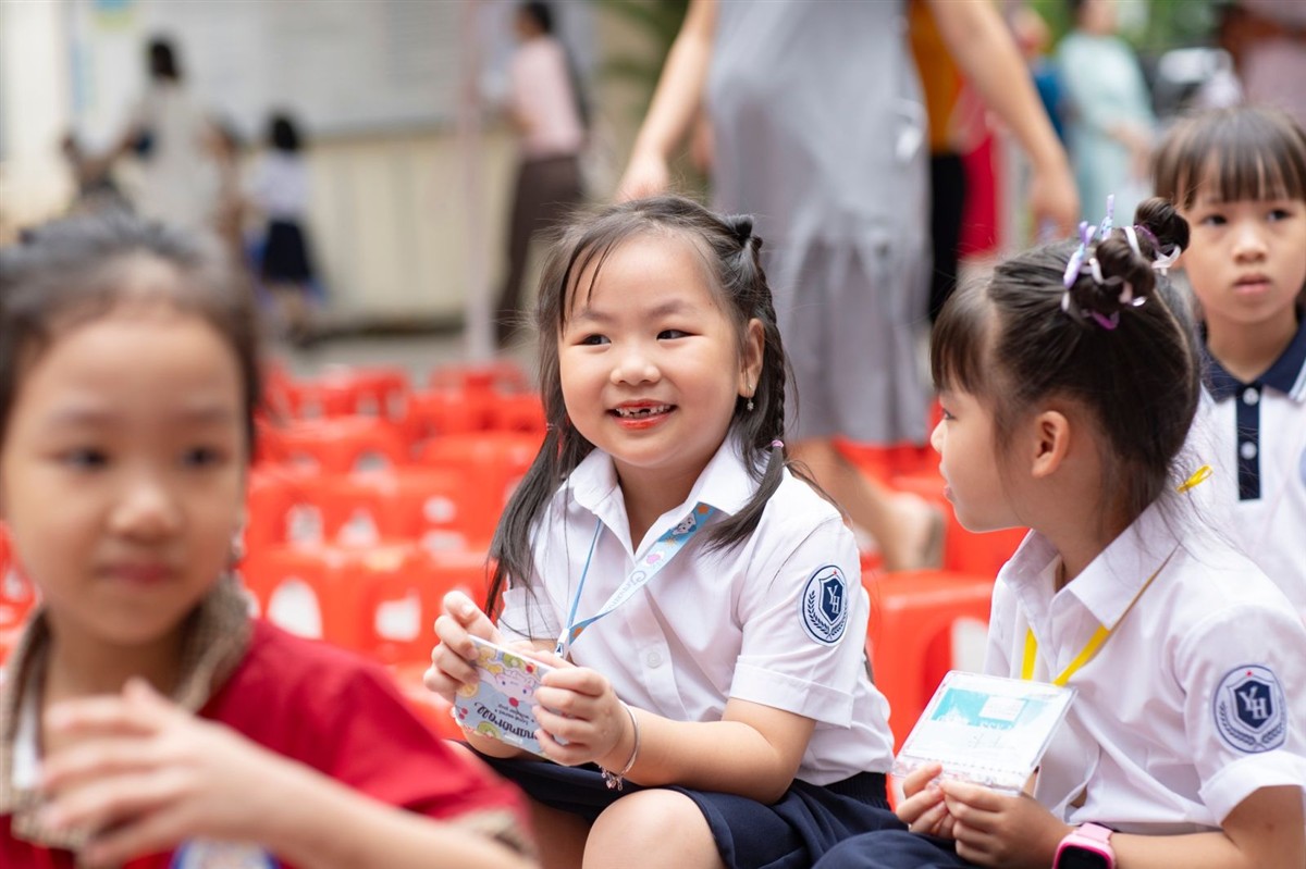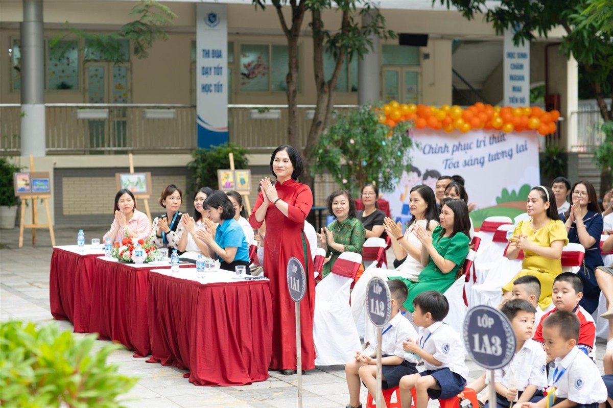 “Mỗi ngày đến trường sẽ là một ngày vui, vui vì nhận những tình cảm yêu thương, vui vì những bài học hay, bổ ích mà thầy cô dành cho các con. Chúc các con học sinh khối 1 có một năm học mới thật vui vẻ và đạt được nhiều thành công”, cô Hiệu trưởng bày tỏ.
