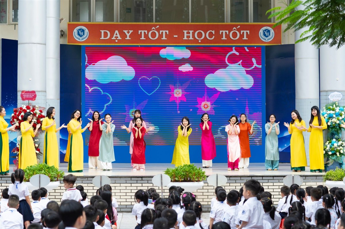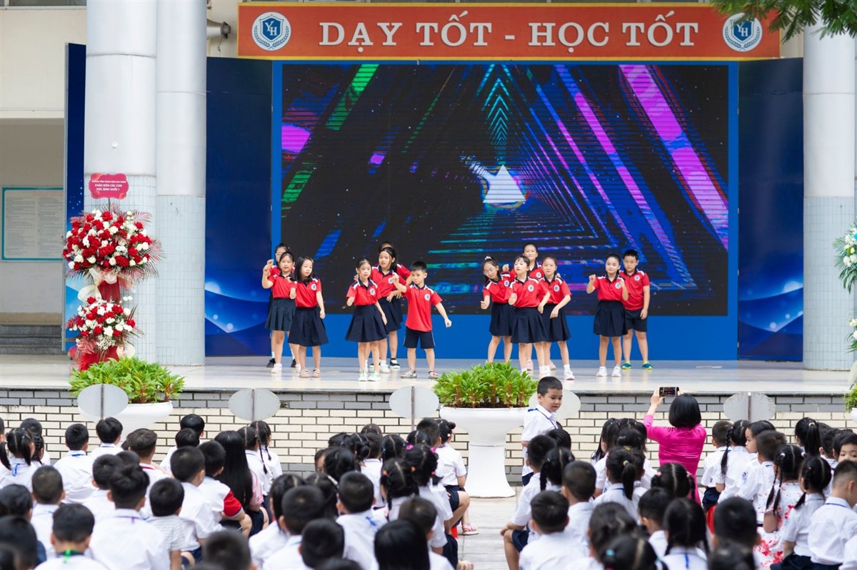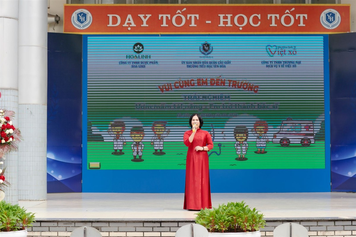 Trong không khí vui tươi, cô Đào Thị Thúy - Hiệu trưởng Trường Tiểu học Yên Hòa, thay mặt tập thể cán bộ, giáo viên, nhân viên nhà trường gửi lời chào, lời chúc thân thương nhất tới các con học sinh khối 1 và phụ huynh có mặt. Cô Thúy mong các con mới bước vào lớp 1 bớt rụt rè, lo âu, thay vào đó là cười tươi, mạnh dạn hơn khi bước vào ngôi trường mới, bạn mới, thầy cô mới. Sau đó, một clip chừng vài phút giới thiệu về nhà trường, các thầy cô, lớp học khang trang, hoạt động học tập và trải nghiệm thú vị, bổ ích ở trường, hấp dẫn không chỉ các bạn nhỏ mà cả các phụ huynh có mặt.