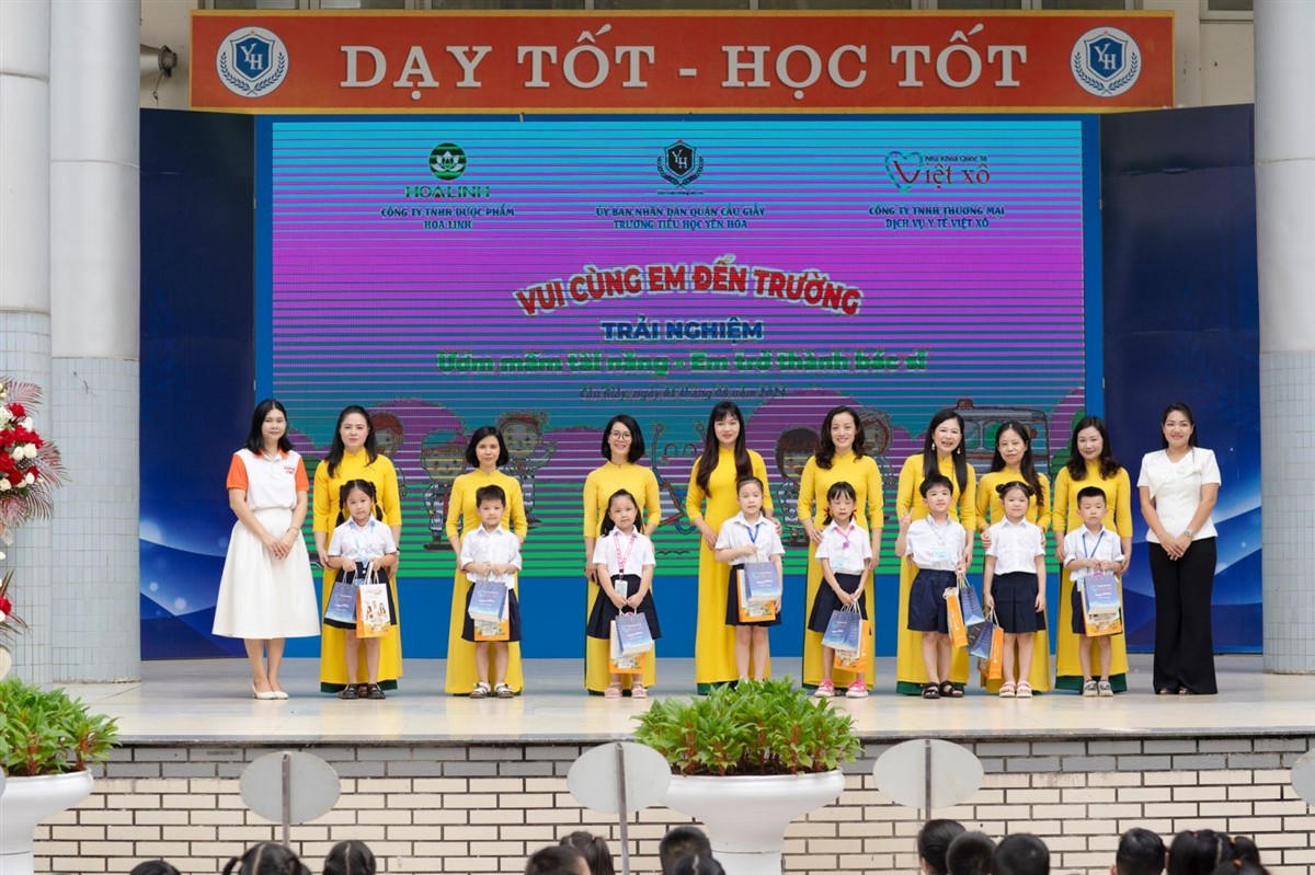 Đặc biệt, các tân học sinh nhỏ tuổi của Trường Tiểu học Yên Hòa còn được công ty TNHH dược phẩm Hoa Linh, công ty TNHH thương mại dịch vụ y tế Việt Xô trao tặng những món quà nhỏ đầy ý nghĩa, chứa đựng biết bao tình cảm yêu thương dành cho các con.