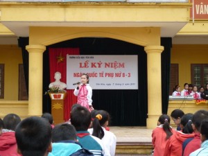 Hãy gửi những lời chúc, lời hát đẹp nhất tới các bà, các mẹ, các chị em gái và các bạn nữ đáng yêu các bạn nhé !”. Đó là thông điệp mà chương trình “Kỉ niệm ngày Quốc tế phụ nữ 8 – 3″ vừa diễn ra sáng nay trong lễ chào cờ đầu tuần.