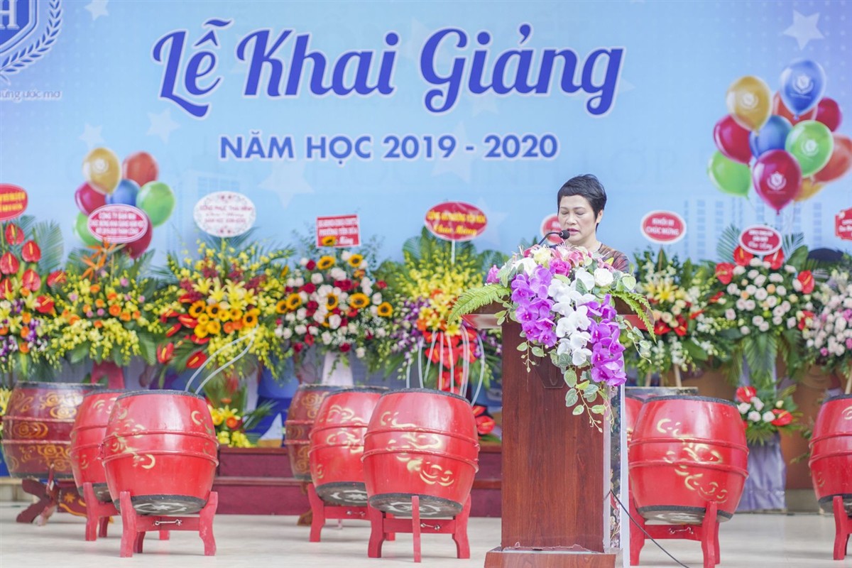 Và có lẽ phần ấn tượng, gây xúc động nhất là giây phút cô Nguyễn Thị Phương Lan- Nhà giáo ưu tú- Bí thư chi bộ, Hiệu trưởng tuyên bố khai giảng và đánh hồi trống mở đầu năm học mới. Hồi trống gióng giả vang vọng làm rộn ràng náo nức lòng người. Ánh mắt của cô Hiệu trưởng, các thầy cô giáo và các em học sinh đều lấp lánh niềm vui thể hiện sự háo hức, phấn khởi khi bước vào năm học mới.
