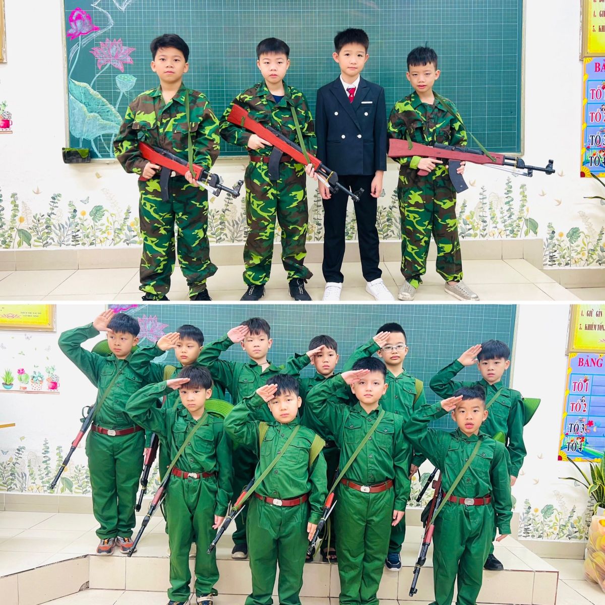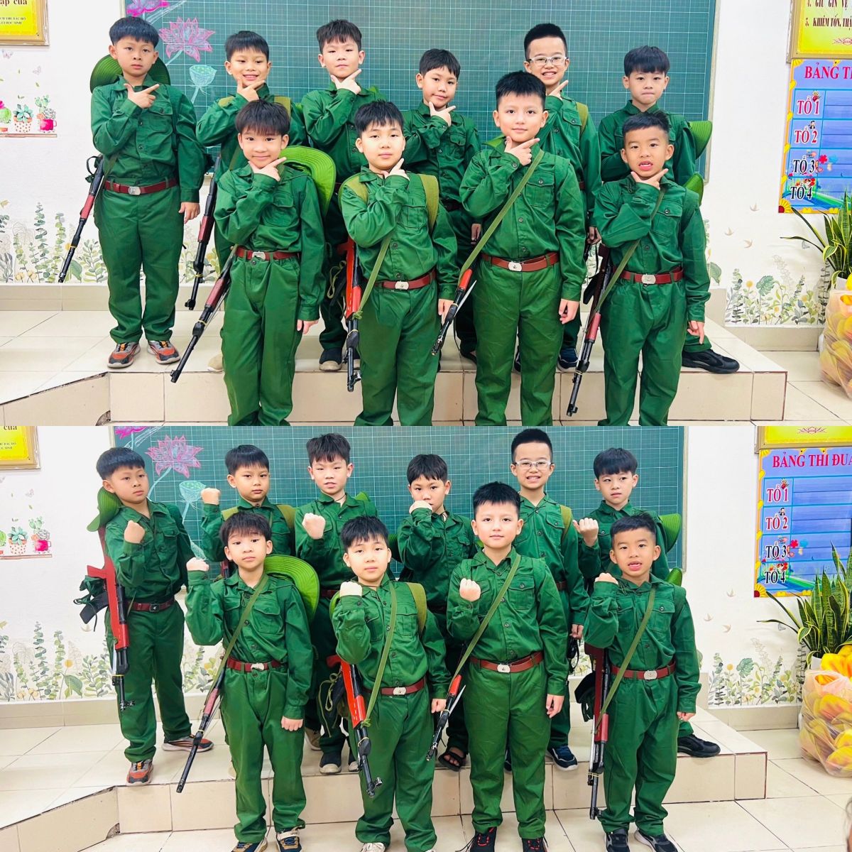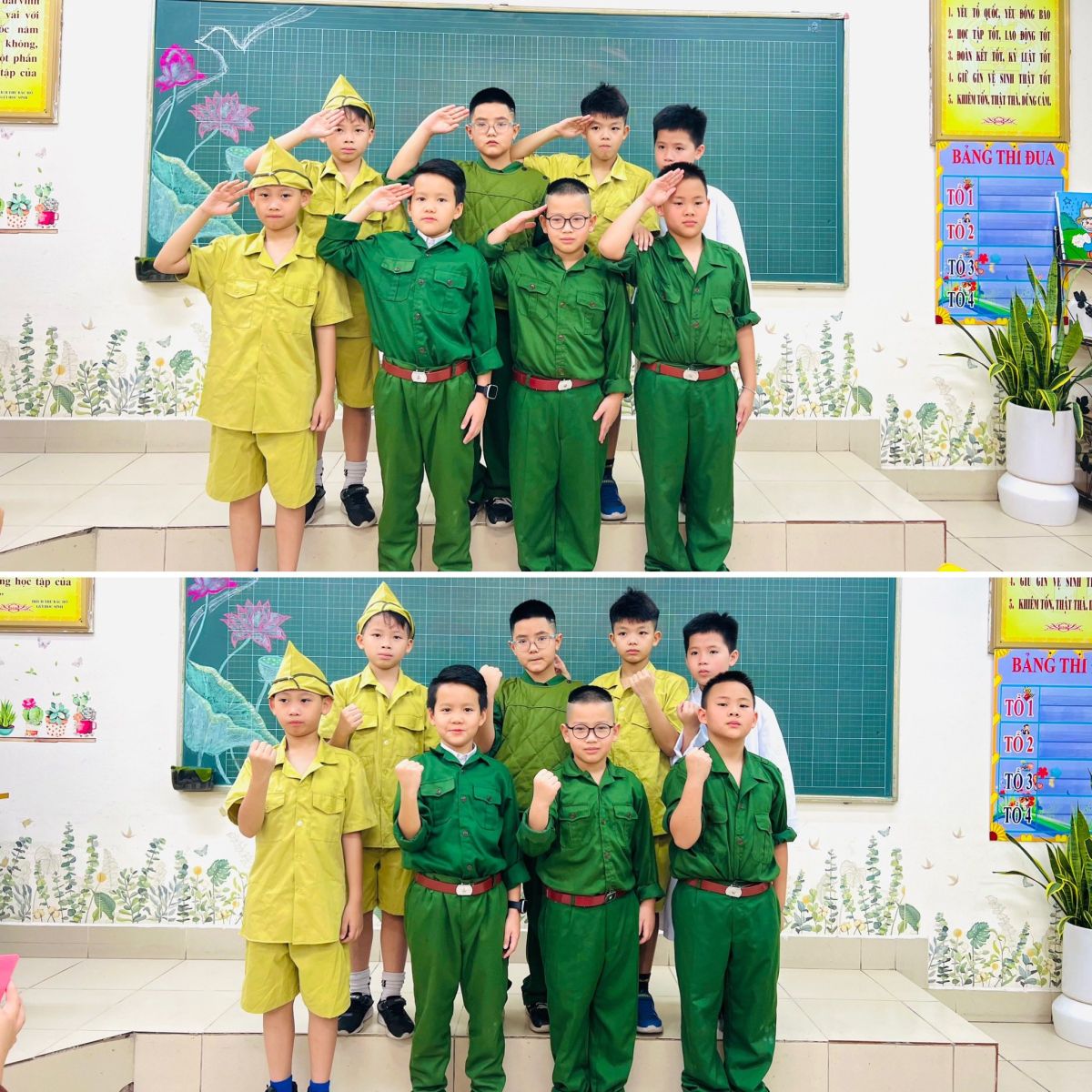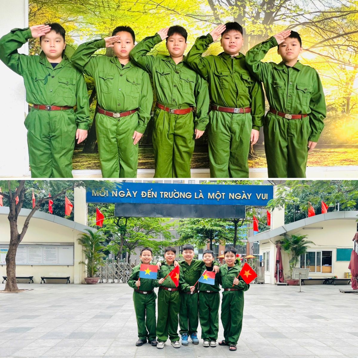 Tiết mục kể chuyện theo sách “Đại thắng mùa xuân” do học sinh khối 3 và 5 thể hiện – sân khấu hóa đầy hào hùng về cuộc Tổng tiến công và nổi dậy năm 1975.