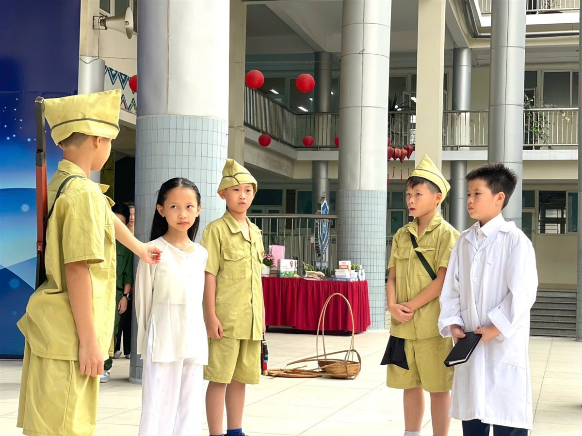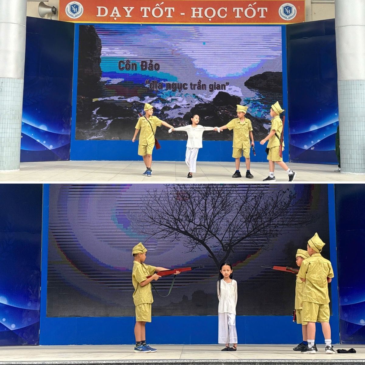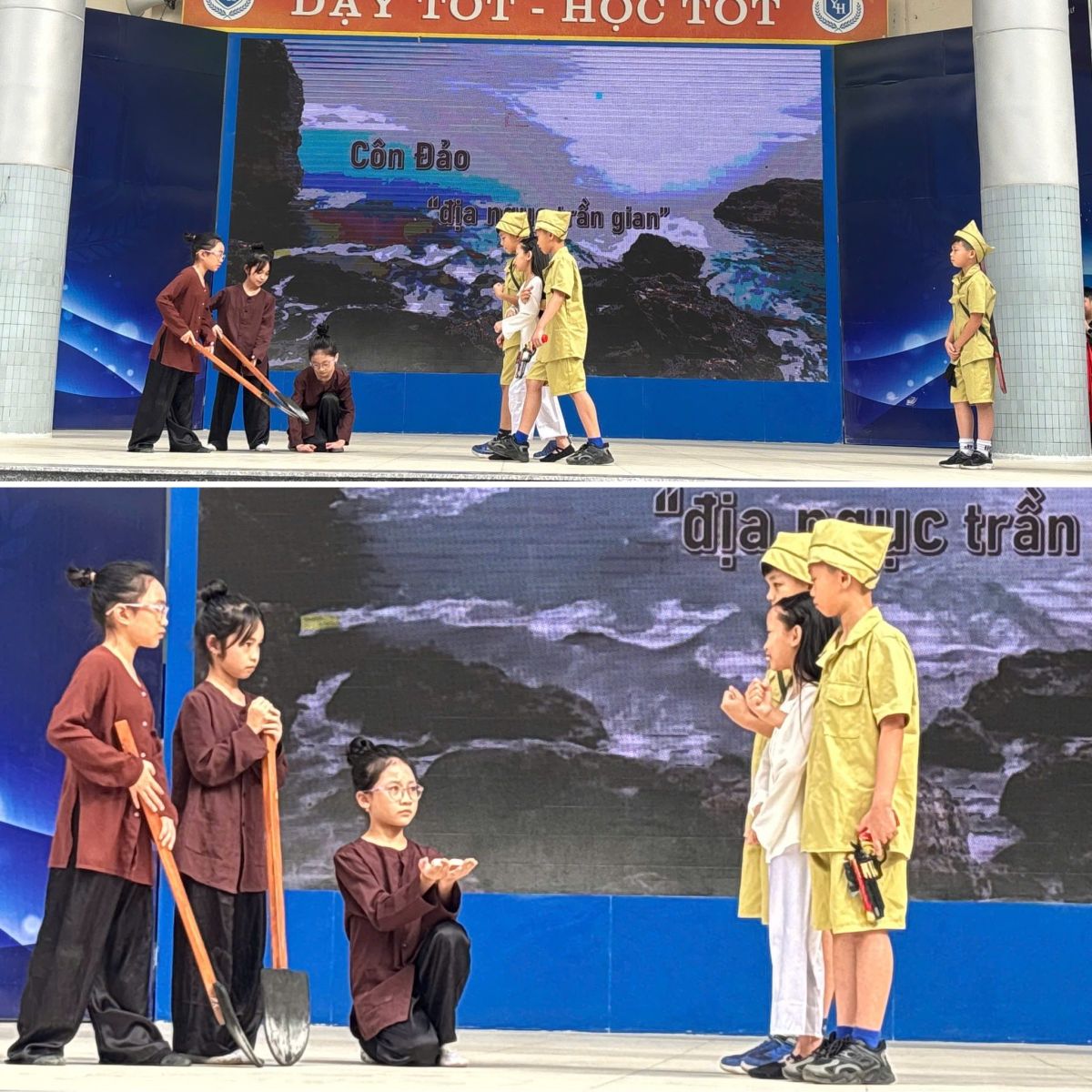 Tiết mục kể chuyện theo sách “Võ Thị Sáu” do học sinh khối 2 và 4 thể hiện – sâu lắng, xúc động, truyền cảm hứng về lòng dũng cảm và tinh thần yêu nước.