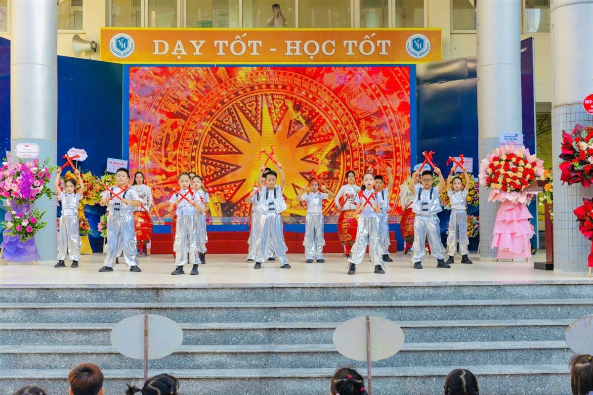 Chương trình khai giảng của nhà trường được tổ chức ngắn gọn nhưng đầy ý nghĩa. Những tiết mục văn nghệ đặc sắc ca ngợi nghề giáo cao quý và mái trường mến yêu do chính các em học sinh và thầy cô giáo biểu diễn đã mang đến không khí vui tươi, phấn khởi hơn bao giờ hết. Đặc biệt, màn trống hội khai trường rộn ràng vang lên như tiếng gọi của tri thức, khơi dậy niềm háo hức và quyết tâm học tập trong mỗi học sinh.