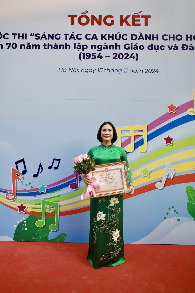 Xin chúc mừng cô giáo Đào Thị Thúy với ca khúc “Ngôi trường mơ ước” đã đạt giải C chung cuộc. Kết quả này càng thêm ý nghĩa khi ngày tri ân các thầy cô giáo đang đến thật gần.