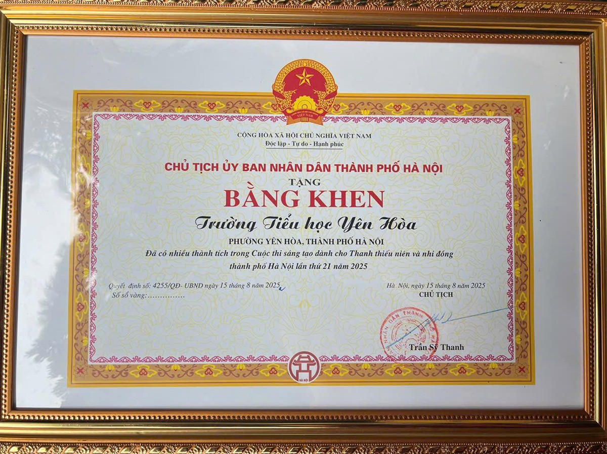 Nhà trường vinh dự được nhận Bằng khen “Đã có nhiều thành tích trong Cuộc thi Sáng tạo dành cho Thanh thiếu niên và Nhi đồng thành phố Hà Nội lần thứ 21 năm 2025” của Chủ tịch UBND Thành phố Hà Nội trao tặng.