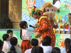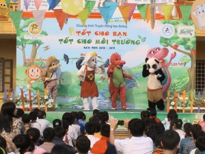 Sau đó, các bạn học sinh được tham gia giao lưu cùng chú hề hóm hỉnh và nghe câu chuyện nhỏ rất thú vị của các bạn Thỏ, Khỉ, Cá Sấu và Gấu Trúc Panđa.