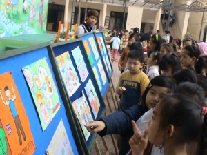 Ở phần đầu của chương trình, ban tổ chức đã trưng bày bức tranh tham gia dự thi “Vẽ tranh về bảo vệ môi trường”