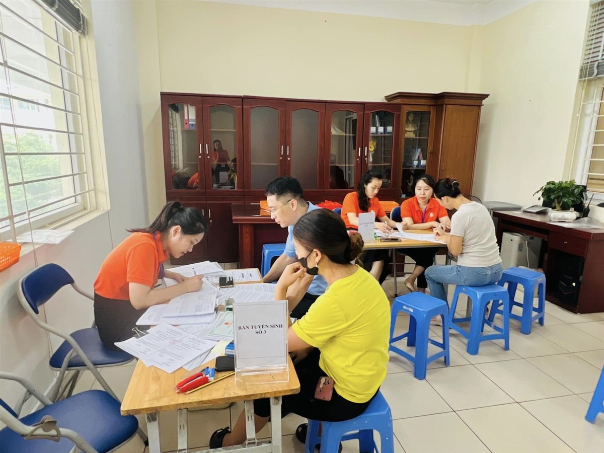 Ban tuyển sinh nhà trường nhiệt tình hỗ trợ phụ huynh trong ngày tuyển sinh trực tuyến đầu tiên và những món quà đáng yêu đã được gửi tặng đến các em học sinh lớp 1.