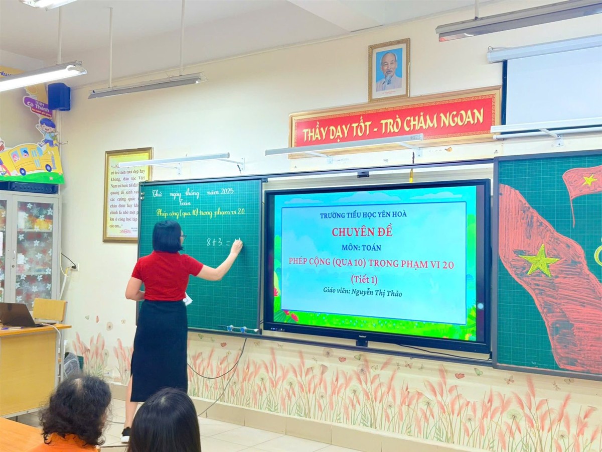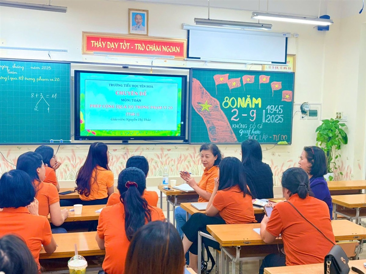 Thực hiện Kế hoạch bồi dưỡng chuyên môn năm học 2025–2026, chiều ngày 27/8/2025, khối 2 trường Tiểu học Yên Hoà đã tổ chức thành công buổi sinh hoạt chuyên đề môn Toán lớp 2 với bài “Phép cộng (qua 10) trong phạm vi 20” – tiết 1.