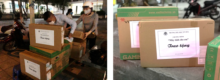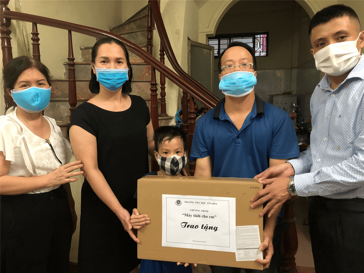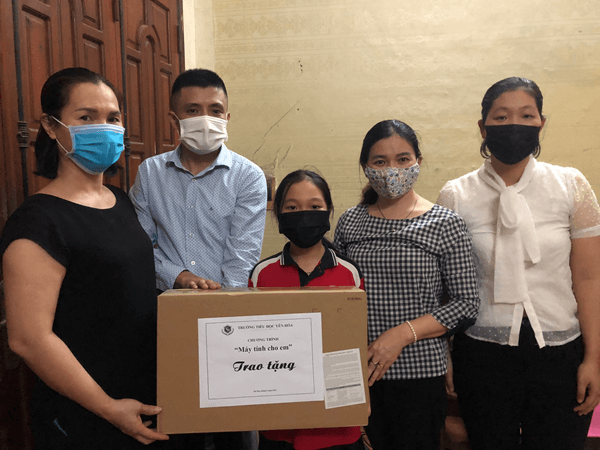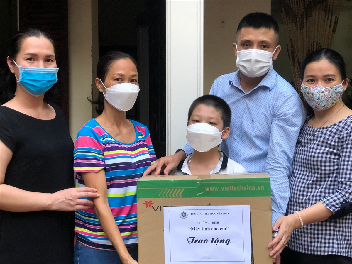 Thực hiện chương trình “Máy tính cho em” của Sở GD&ĐT, trường Tiểu học Yên Hòa đã nhanh chóng rà soát các con học sinh có hoàn cảnh khó khăn chưa có thiết bị đáp ứng việc học trực tuyến, đồng thời tích cực tuyên truyền, vận động cán bộ, giáo viên, nhân viên và phụ huynh, học sinh hưởng ứng, tham gia chương trình. Chỉ trong ít ngày, nhà trường đã nhận được sự quan tâm, ủng hộ và đóng góp nhiệt tình của tập thể cán bộ giáo viên nhà trường và các bậc phụ huynh. Toàn bộ số tiền ủng hộ được, nhà trường đã phối kết hợp với Ban đại diện hội CMHS tiến hành mua và trao tặng máy tính cho các con.
