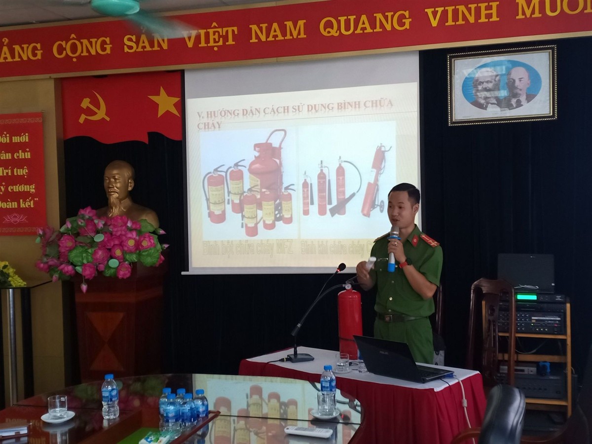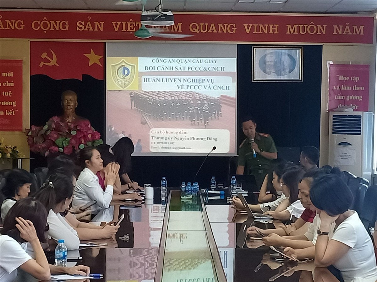 Tại buổi tập huấn, cán bộ nghiệp vụ Phòng Cảnh sát PCCC&CNCH đã cung cấp những thông tin về tình hình cháy, nổ thời gian gần đây, một số vụ cháy lớn gây thiệt hại nghiêm trọng về người và tài sản xảy ra trên cả nước và địa bàn quận, những kiến thức cơ bản về công tác PCCC, hướng dẫn sử dụng các phương tiện chữa cháy tại chỗ như máy bơm chữa cháy, vòi chữa cháy, bình chữa cháy, những kỹ năng thoát hiểm, biện pháp phòng cháy, chữa cháy…Đặc biệt, Cảnh sát Phòng cháy và chữa cháy (PCCC) đã đưa ra các tình huống giả định xảy ra sự cố cháy tại một số khu vực trong nhà trường và nhấn mạnh các kĩ năng thoát hiểm mà cán bộ,giáo viên,nhân viên và học sinh phải nắm được.