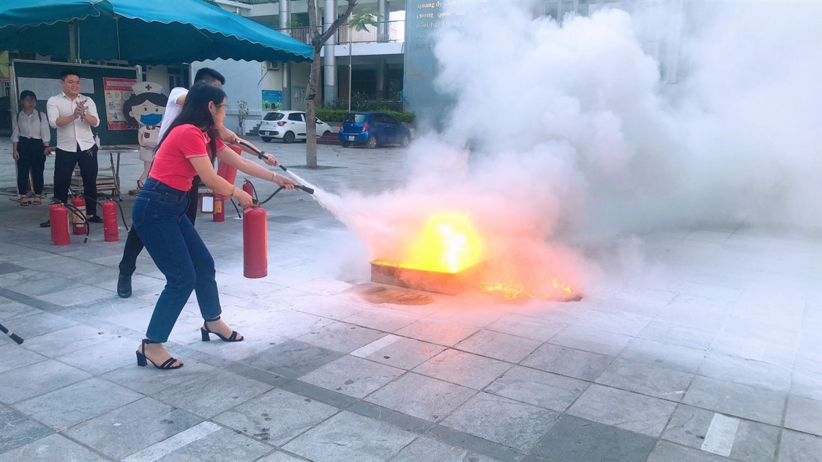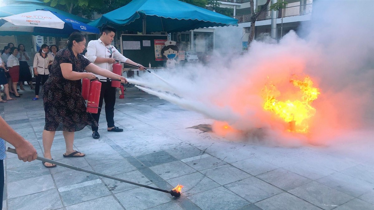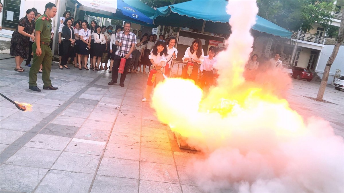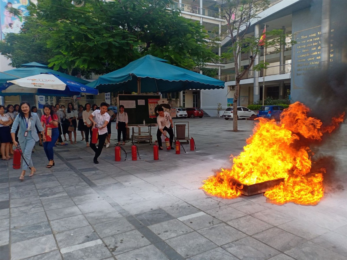 Sau phần phổ biến lý thuyết, dưới sự hướng dẫn của các cán bộ nghiệp vụ Phòng Cảnh sát PCCC&CNCH, cán bộ, giáo viên và nhân viên nhà trường đã được thực hành cách sử dụng các phương tiện chữa cháy tại chỗ như bình bột chữa cháy, bình chữa cháy bằng khí CO2 để dập tắt đám cháy, cách xử lý khi rò rỉ khí gas và cách thức xử lý nhanh các tình huống có thể xảy ra.