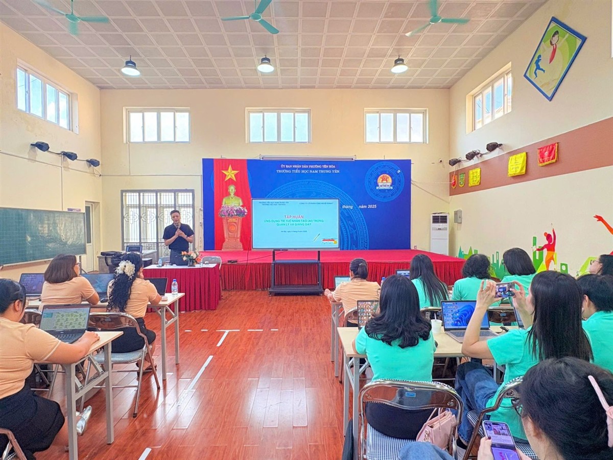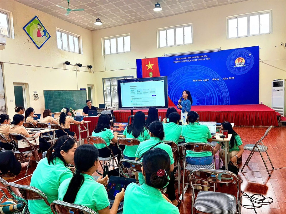 Sáng ngày 06/9/2025, Trường Tiểu học Yên Hoà đã phối hợp cùng Trường Tiểu học Nam Trung Yên tổ chức thành công buổi tập huấn chuyên đề: “Ứng dụng AI thiết kế Kế hoạch dạy học và Kiểm tra đánh giá”. Buổi chuyên đề không chỉ mang đến những kiến thức thiết thực mà còn lan tỏa tinh thần đổi mới mạnh mẽ trong đội ngũ giáo viên ngay từ đầu năm học 2025 – 2026.