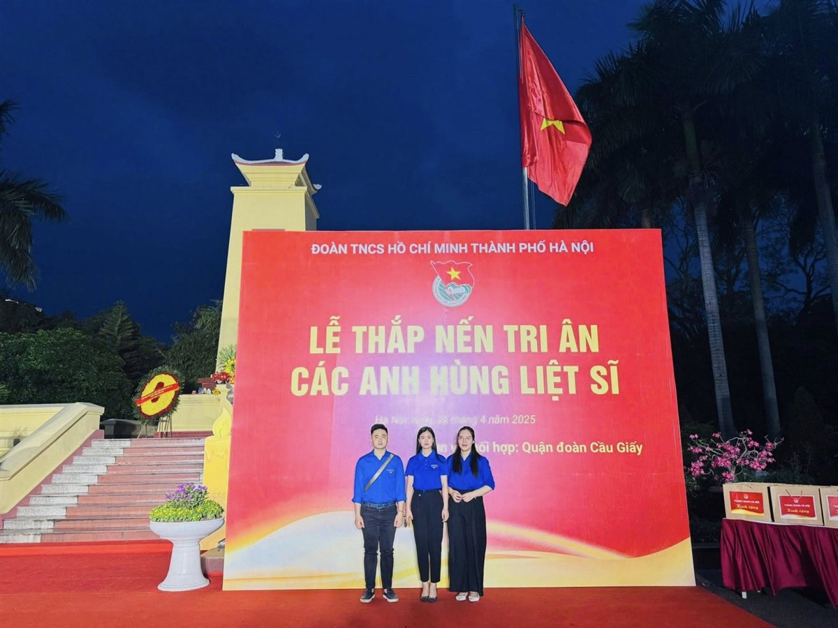 Thực hiện Công văn số 535-CV/ĐTN ngày 22/4/2025 của Ban Thường vụ Quận đoàn Cầu Giấy về việc tổ chức “Lễ thắp nến tri ân các anh hùng liệt sĩ năm 2025”, đoàn viên thanh niên Trường Tiểu học Yên Hòa đã tích cực hưởng ứng và tham gia buổi lễ diễn ra vào 18h00 ngày 28 tháng 4 năm 2025 (Thứ Hai) tại Nghĩa trang Mai Dịch.