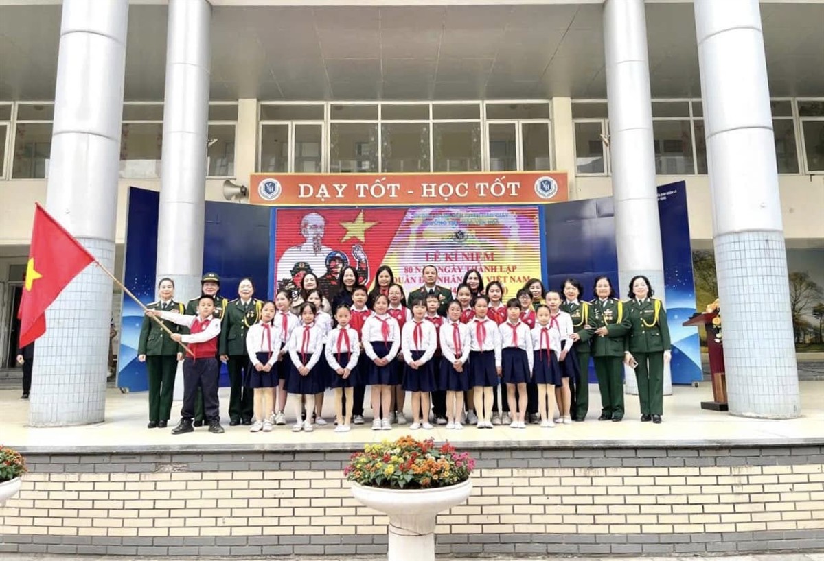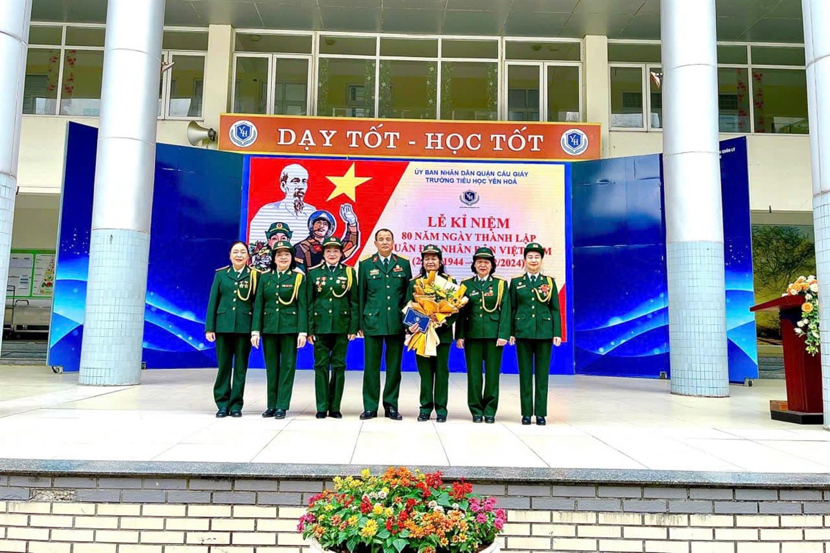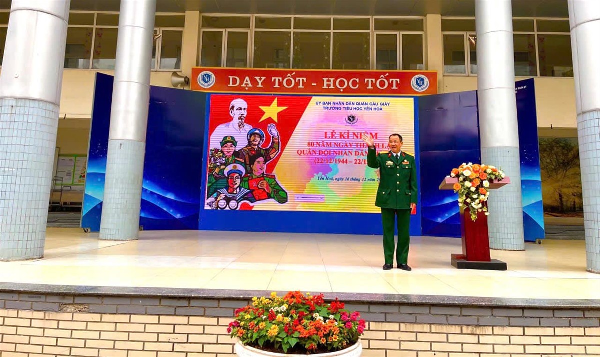 Tại đây, các thầy cô giáo cùng các em học sinh đã được bác Nguyễn Văn Nghiệp, đại diện cho Hội cựu chiến binh phường Yên Hòa giới thiệu về ý nghĩa lịch sử, hoàn cảnh ra đời và những đóng góp to lớn của Quân đội nhân dân Việt Nam trong sự nghiệp đấu tranh giải phóng, giành lại độc lập cho dân tộc và trong công cuộc xây dựng, bảo vệ Tổ quốc ngày nay. Ngày 22-12-1944, tại khu rừng thuộc huyện Nguyên Bình (Cao Bằng), Đội Việt Nam Tuyên truyền Giải phóng quân được thành lập, là tiền thân của Quân đội nhân dân Việt Nam. Tên gọi “Quân đội nhân dân” là do Chủ tịch Hồ Chí Minh đặt với ý nghĩa “từ nhân dân mà ra, vì nhân dân phục vụ”. Từ đó, ngày 22/12 hằng năm được lấy là ngày truyền thống của Quân đội nhân dân Việt Nam.