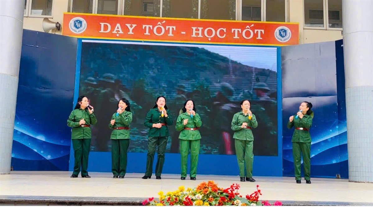 Bên cạnh đó, các em học sinh còn được nghe các bác cựu chiến binh chia sẻ về những trận đánh oanh liệt, hào hùng; những kỷ niệm về tình đồng chí, đồng đội đoàn kết gắn bó trong lửa đạn chiến tranh; về cuộc sống của các cựu chiến binh trong thời bình… Thông qua buổi trò chuyện, thầy và trò nhà trường hiểu rõ hơn về những chiến công vang dội của quân đội ta trong hai cuộc chiến tranh vệ quốc, hiểu rõ hơn về những cống hiến, hi sinh của các anh Bộ đội Cụ Hồ để giành được độc lập, mang lại cuộc sống no ấm trong hòa bình hôm nay cho nhân dân. Kết thúc buổi giao lưu là những tiết mục văn nghệ đặc sắc do các bác cựu chiến binh phường Yên Hòa và câu lạc bộ “Ca khúc măng non” của trường biểu diễn.