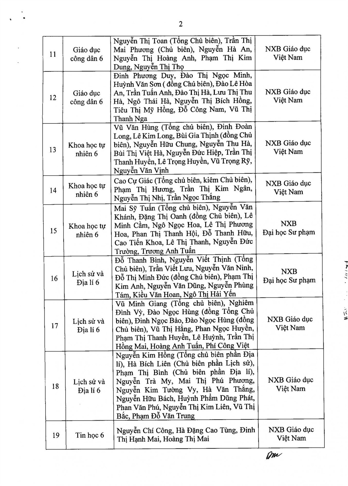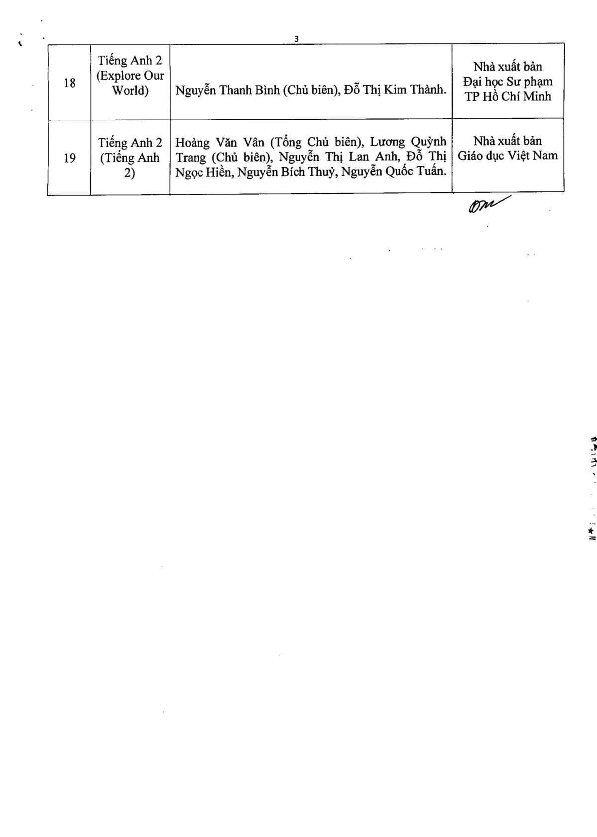THÔNG BÁO DANH MỤC SÁCH GIÁO KHOA LỚP 2 SỬ DỤNG TRONG NĂM HỌC 2021 - 2022