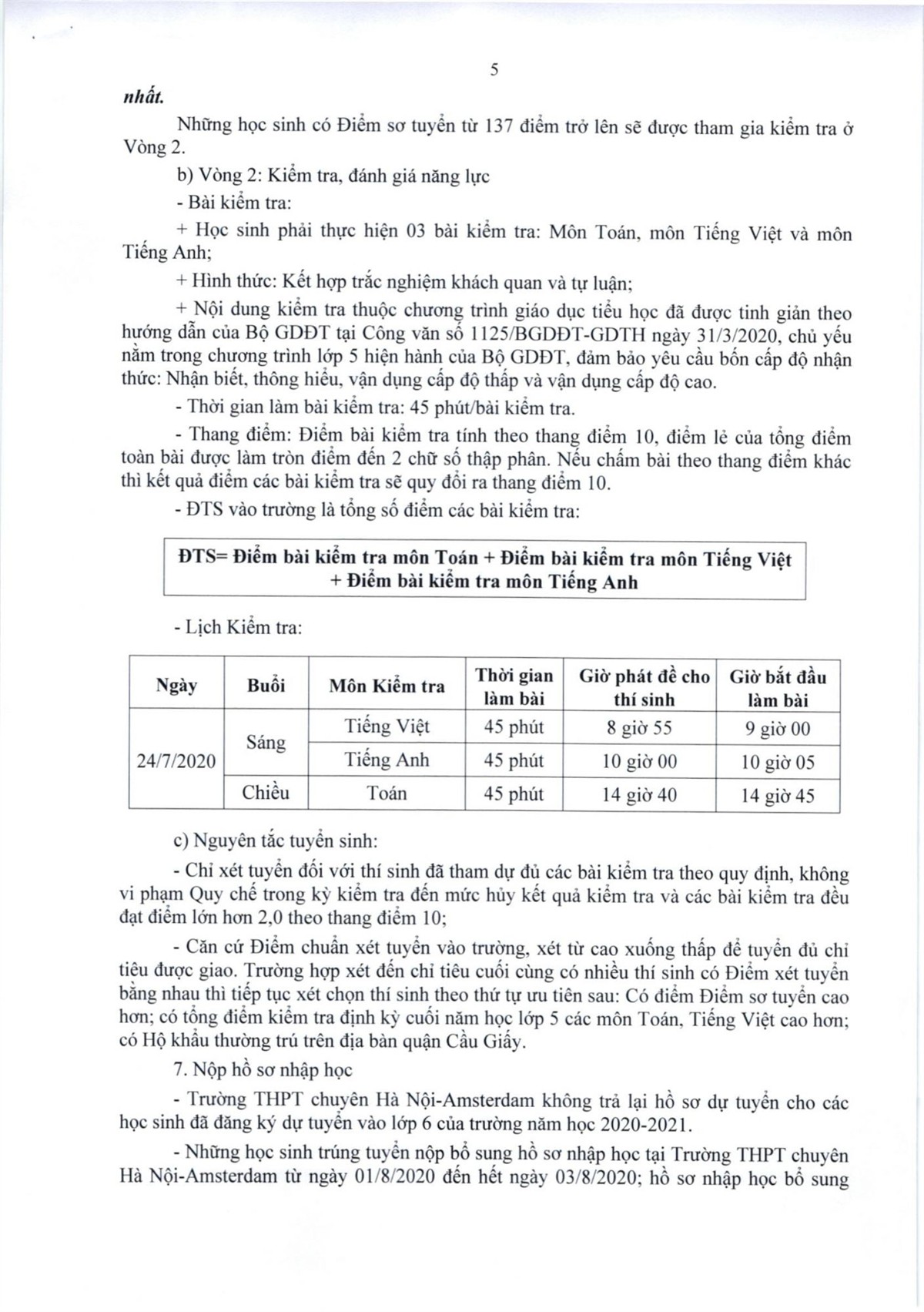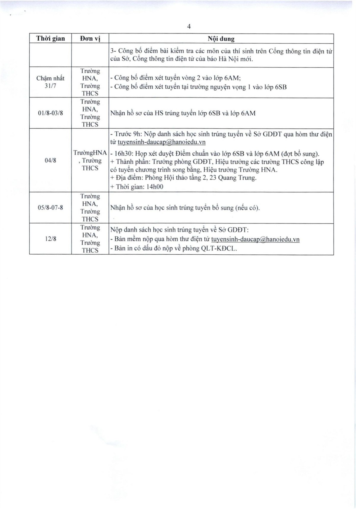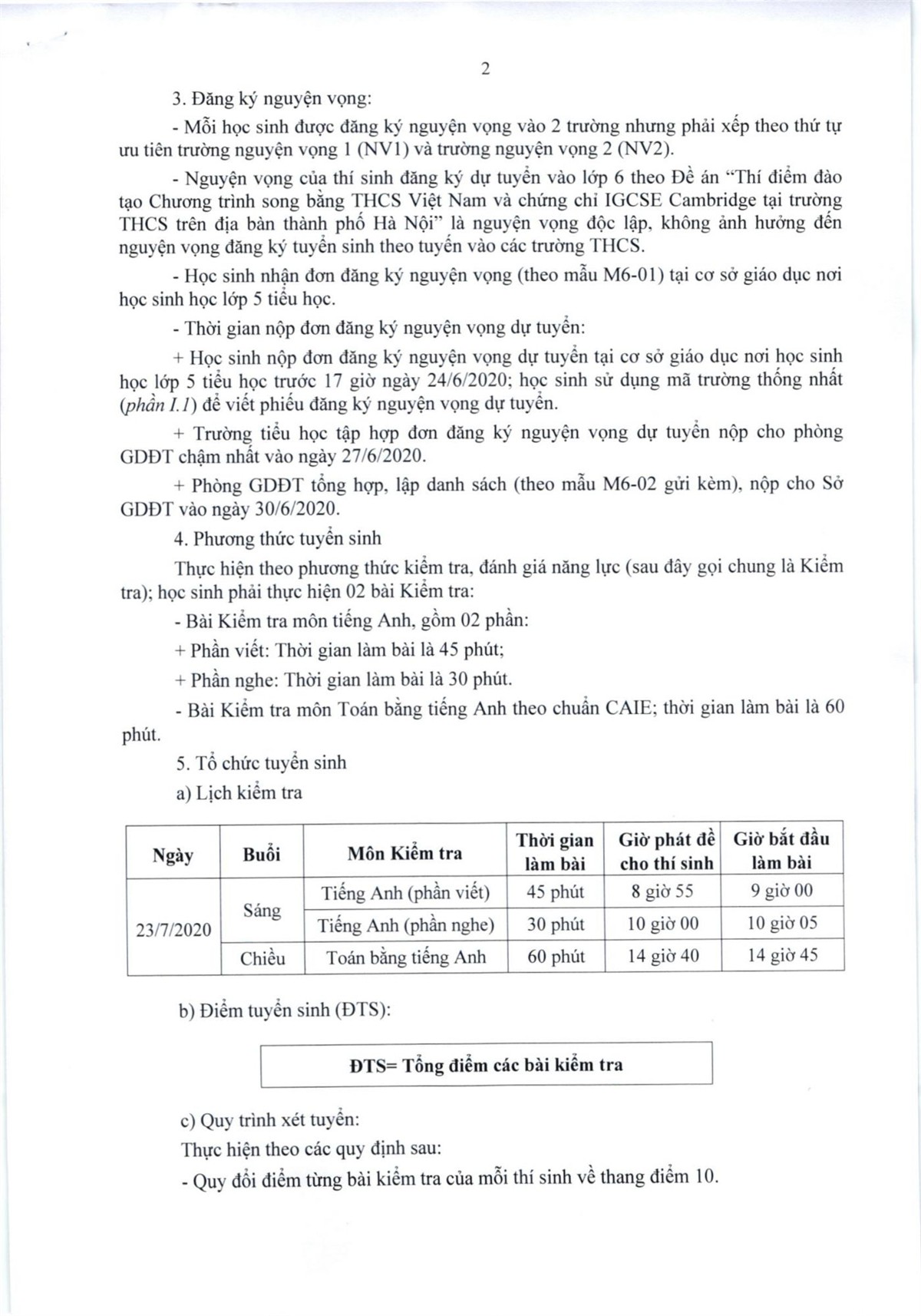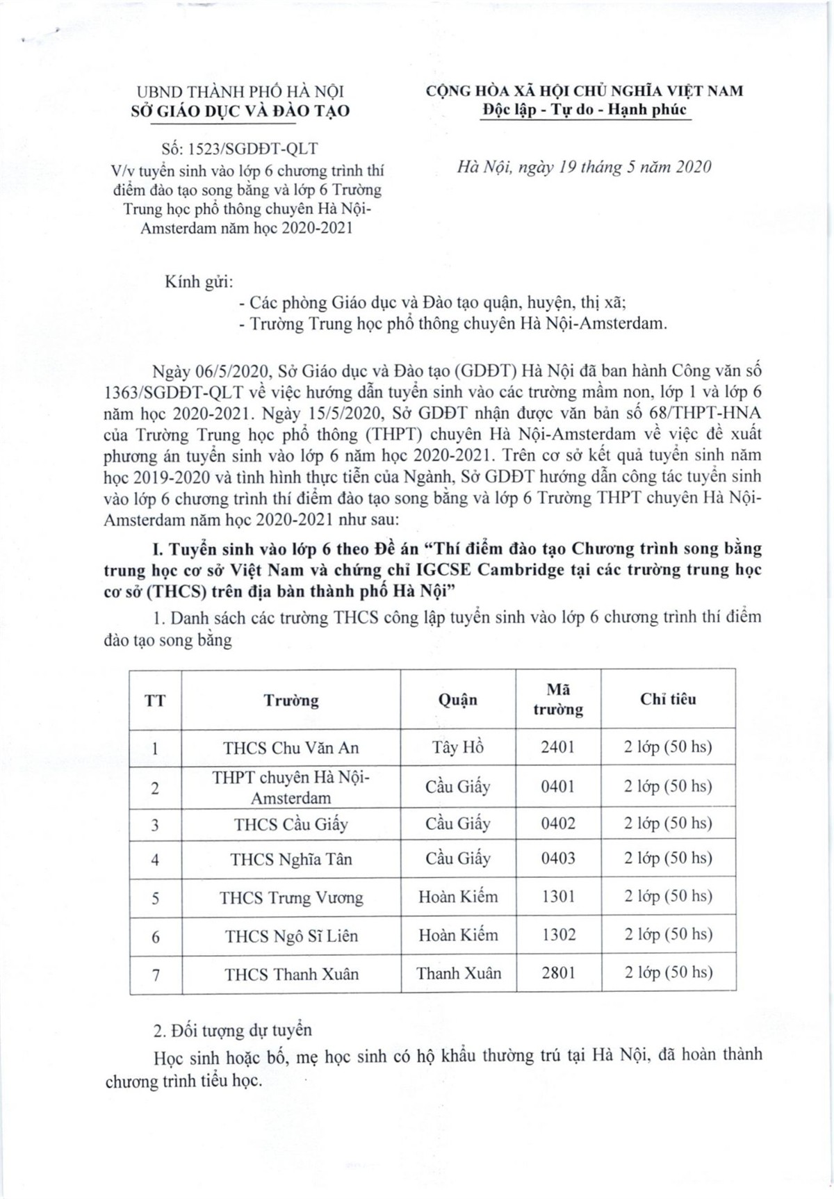THÔNG BÁO KẾ HOẠCH TUYỂN SINH VÀO LỚP 6 CHƯƠNG TRÌNH SONG BẰNG CỦA SỞ GIÁO DỤC