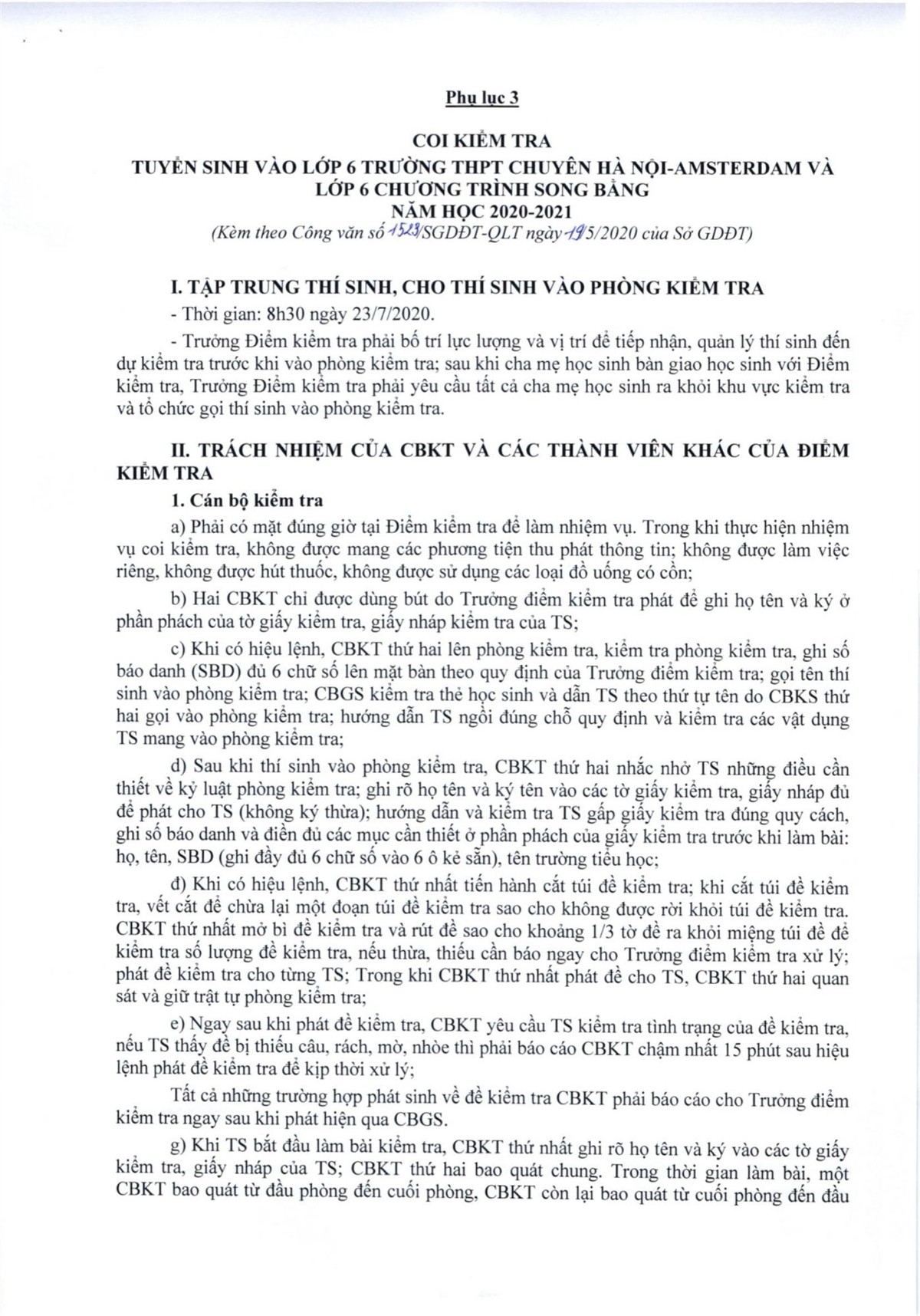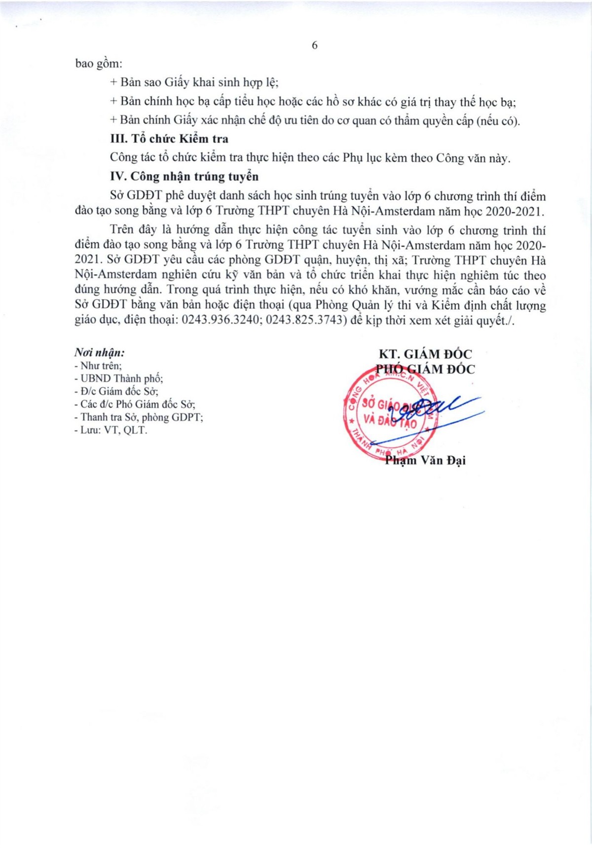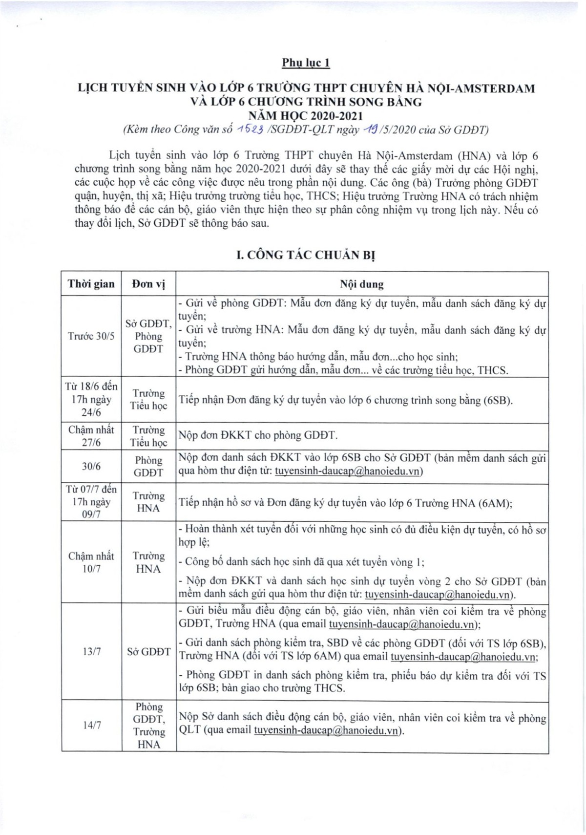 Thông báo kế hoạch tuyển sinh vào lớp 6 chương trình song bằng của Sở giáo dục
