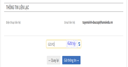 Sau khi đã kiểm tra thông tin, CMHS nhập Mã Xác Nhận và nhấn vào nút Gửi thông tin để xác nhận đăng ký tuyển sinh trực tuyến.