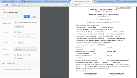 (Phụ huynh hoàn toàn chịu trách nhiệm về những thông tin đã cung cấp trong đơn).