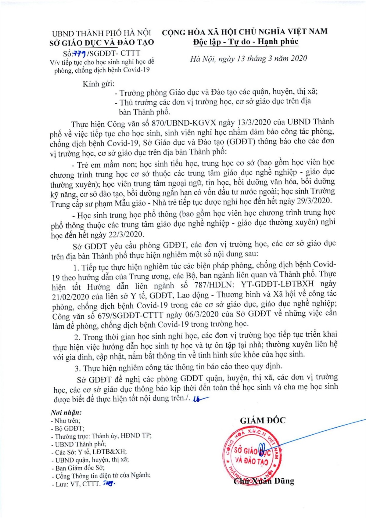 Thông báo về việc tiếp tục cho học sinh nghỉ học để phòng chống dịch bệnh Covid-19