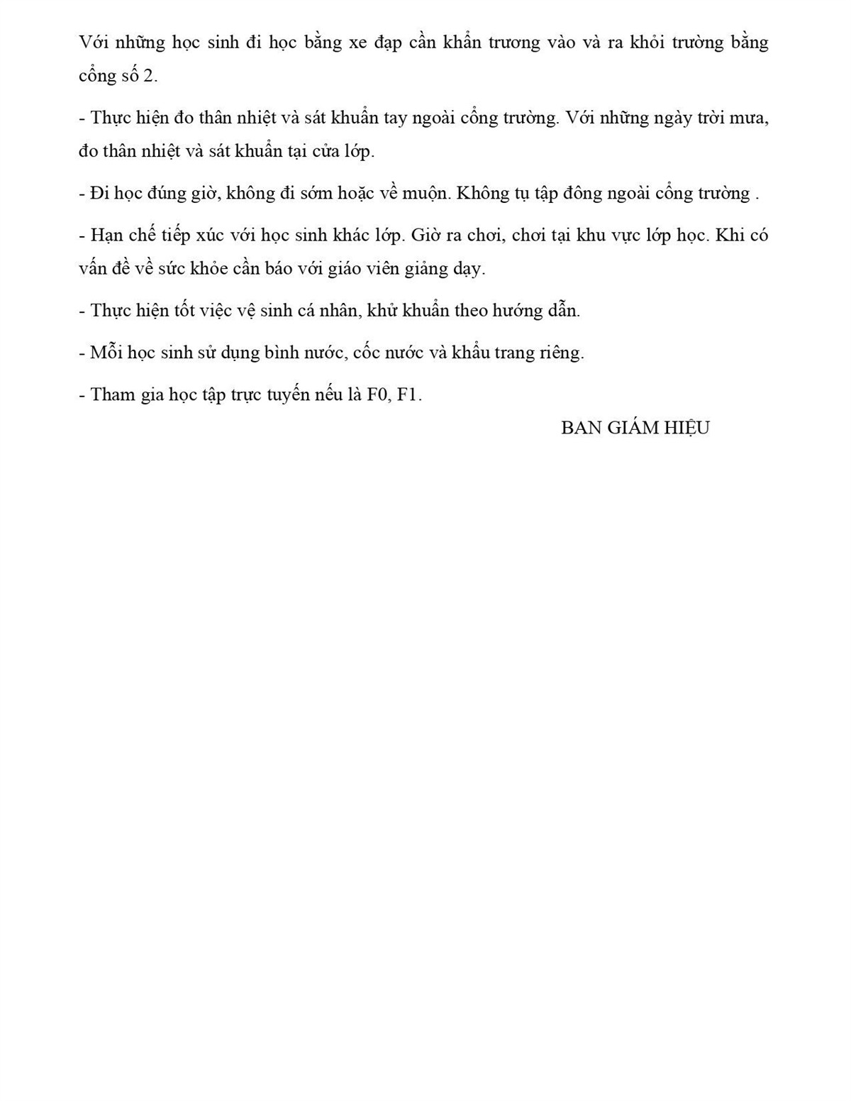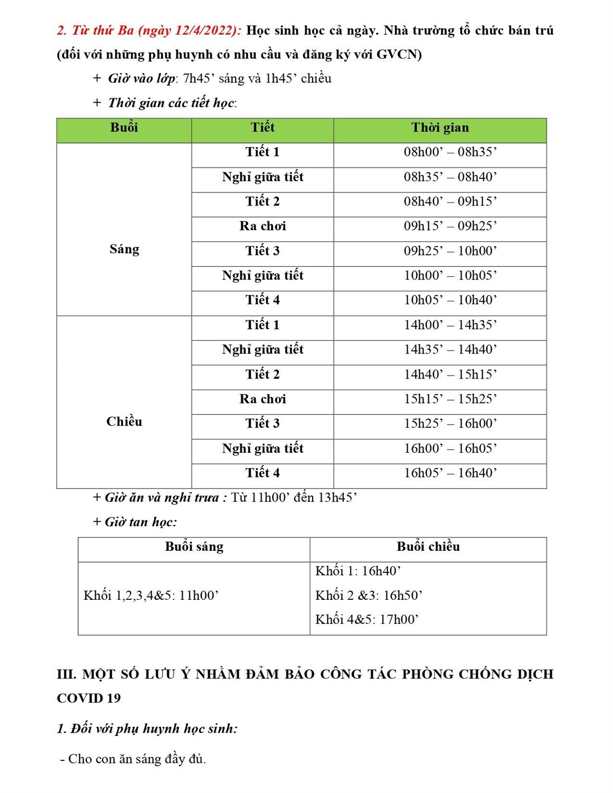 THÔNG BÁO VỀ VIỆC ĐI HỌC TRỞ LẠI