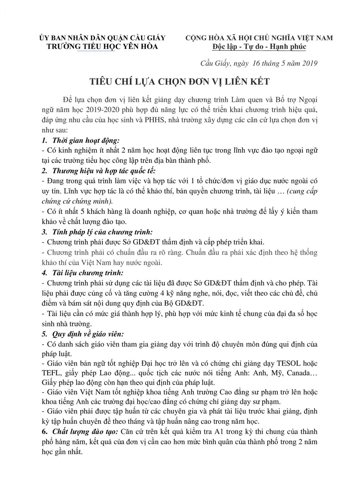 TRƯỜNG TIỂU HỌC YÊN HOÀ