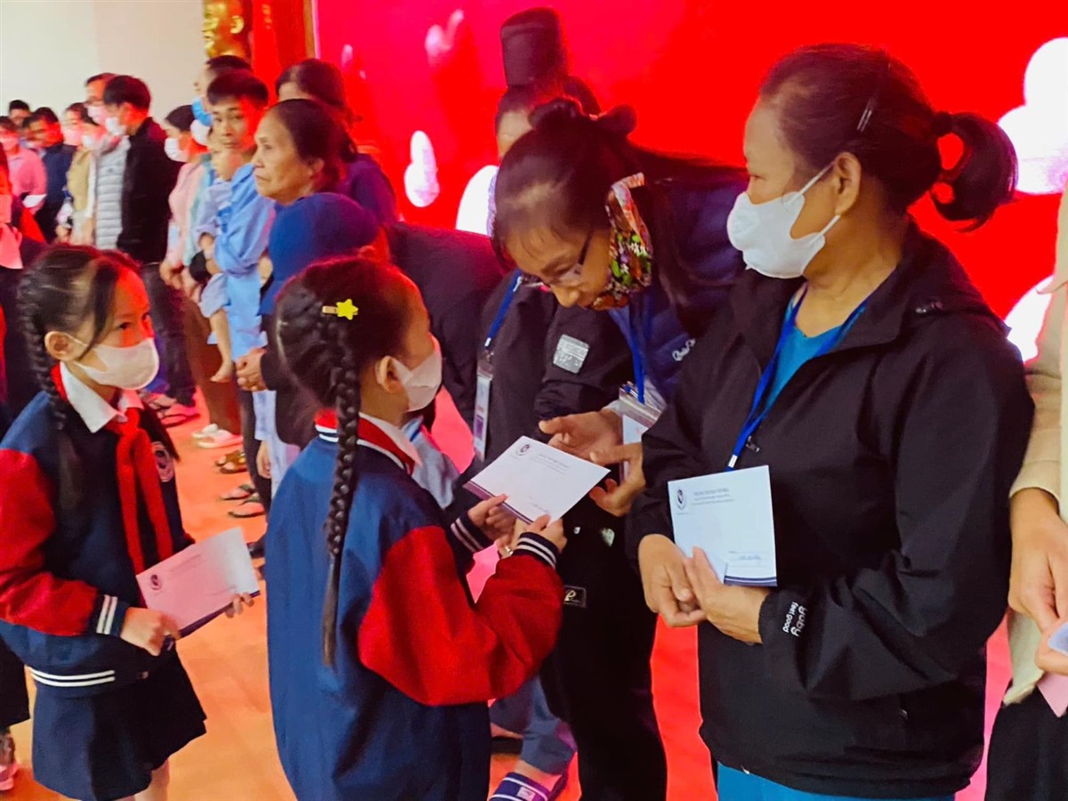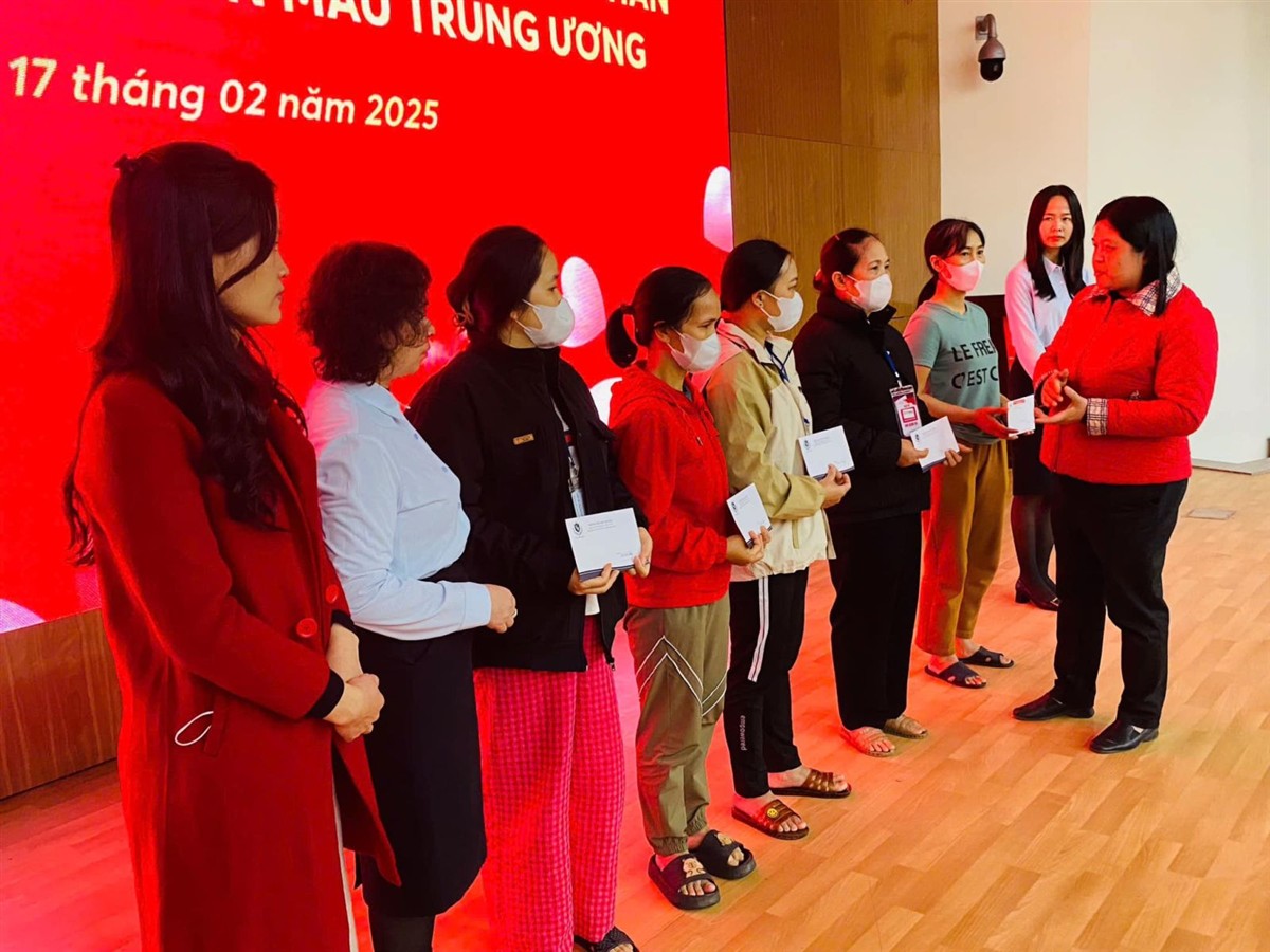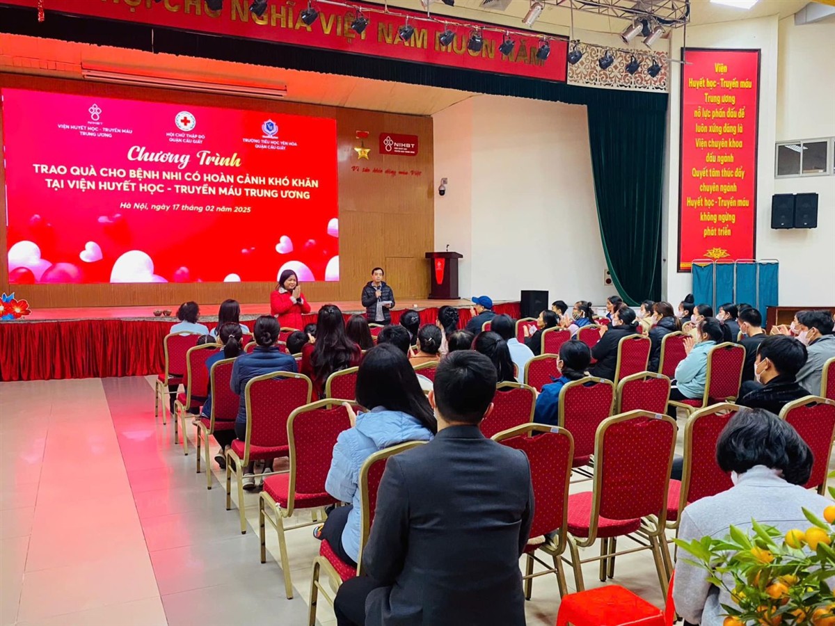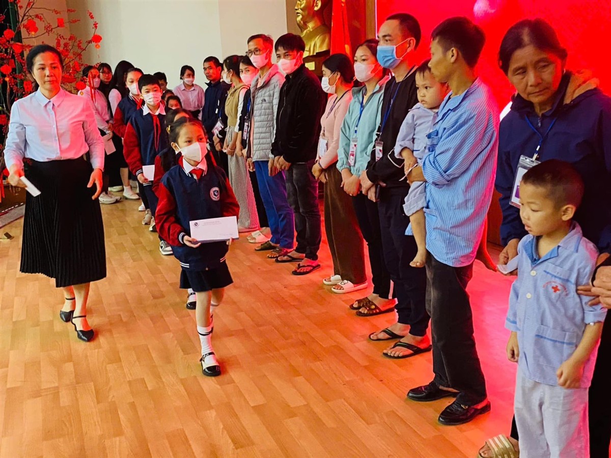 Với toàn bộ số tiền thu được từ các dự án “Lì xì yêu thương”, “Vườn hoa xuân”, “Tủ sách nhân ái” và "Gian hàng hội chợ xuân" là 70.000.000 đồng, chiều ngày 17/02/2025, phối hợp với Hội Chữ thập đỏ Quận Cầu Giấy do bà Bùi Thị Lan Phương - Chủ tịch Hội Chữ thập đỏ Quận Cầu Giấy đại diện, đại diện Ban Giám hiệu, giáo viên, nhân viên, học sinh và cha mẹ học sinh nhà trường đã có mặt tại Viện Huyết học – Truyền máu Trung ương để trao tận tay những món quà nhỏ tới gia đình các bệnh nhi có hoàn cảnh khó khăn đang điều trị tại viện. Đây là tình cảm ấm áp gửi gắm sự sẻ chia chân thành cùng những lời chúc, lời động viên tới các bạn nhỏ kém may mắn. Hi vọng các em sẽ thật mạnh mẽ, sớm chiến thắng bệnh tật để trở về với gia đình, thầy cô và bạn bè! Nhận được món quà, các gia đình bệnh nhi không nén được nỗi xúc động.