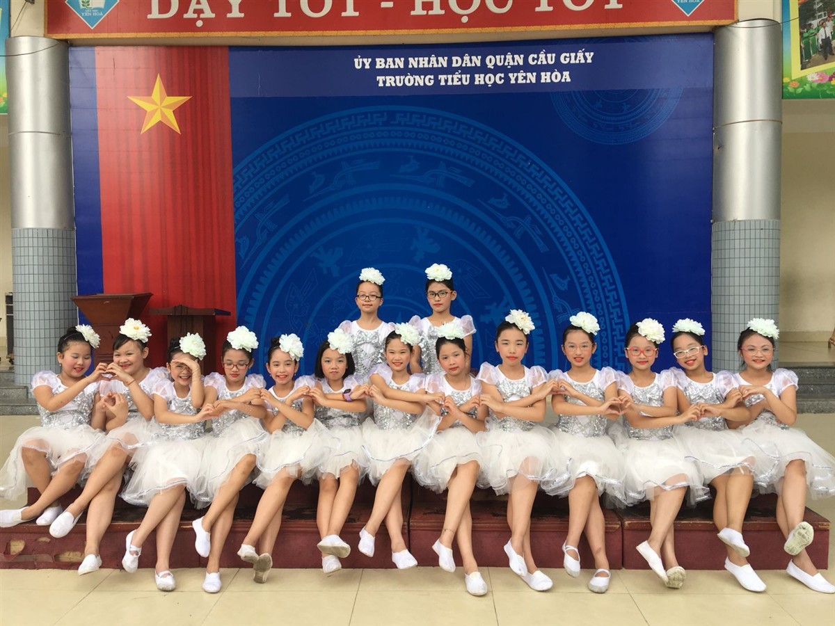Cô và trò trường Tiểu học Yên Hoà tham dự với 3 tiết mục: Tốp ca bài Silent Night, đơn ca bài Joy to the world, song ca bài Jingle bell rock.
