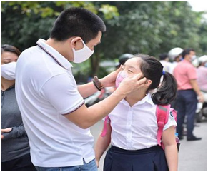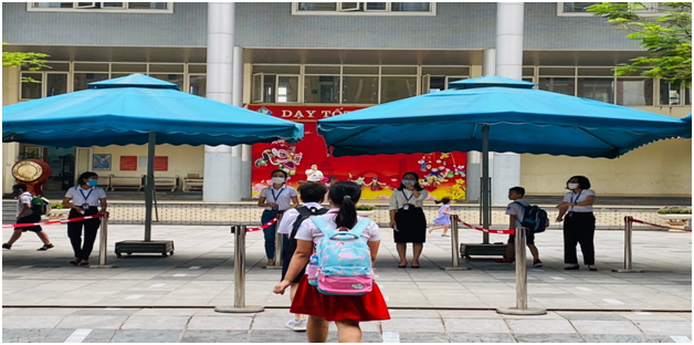 Ở các góc sân, rất nhiều bình xịt khuẩn, nước rửa tay khô đã được nhà trường chuẩn bị sẵn để đảm bảo điều kiện tốt nhất cho các em học sinh vệ sinh sạch sẽ. Hỗ trợ các thầy cô có đông đảo các cô, bác đại diện phụ huynh các lớp sẵn sàng đón học sinh vào cổng, hướng dẫn phân luồng đi. Sau 3 tháng nghỉ học, khi đến trường, cô trò đều háo hức nhưng có lẽ cảm xúc đó đã được kìm nén lại nhường cho việc cẩn thận thực hiện tốt các quy định về phòng, chống dịch bệnh.