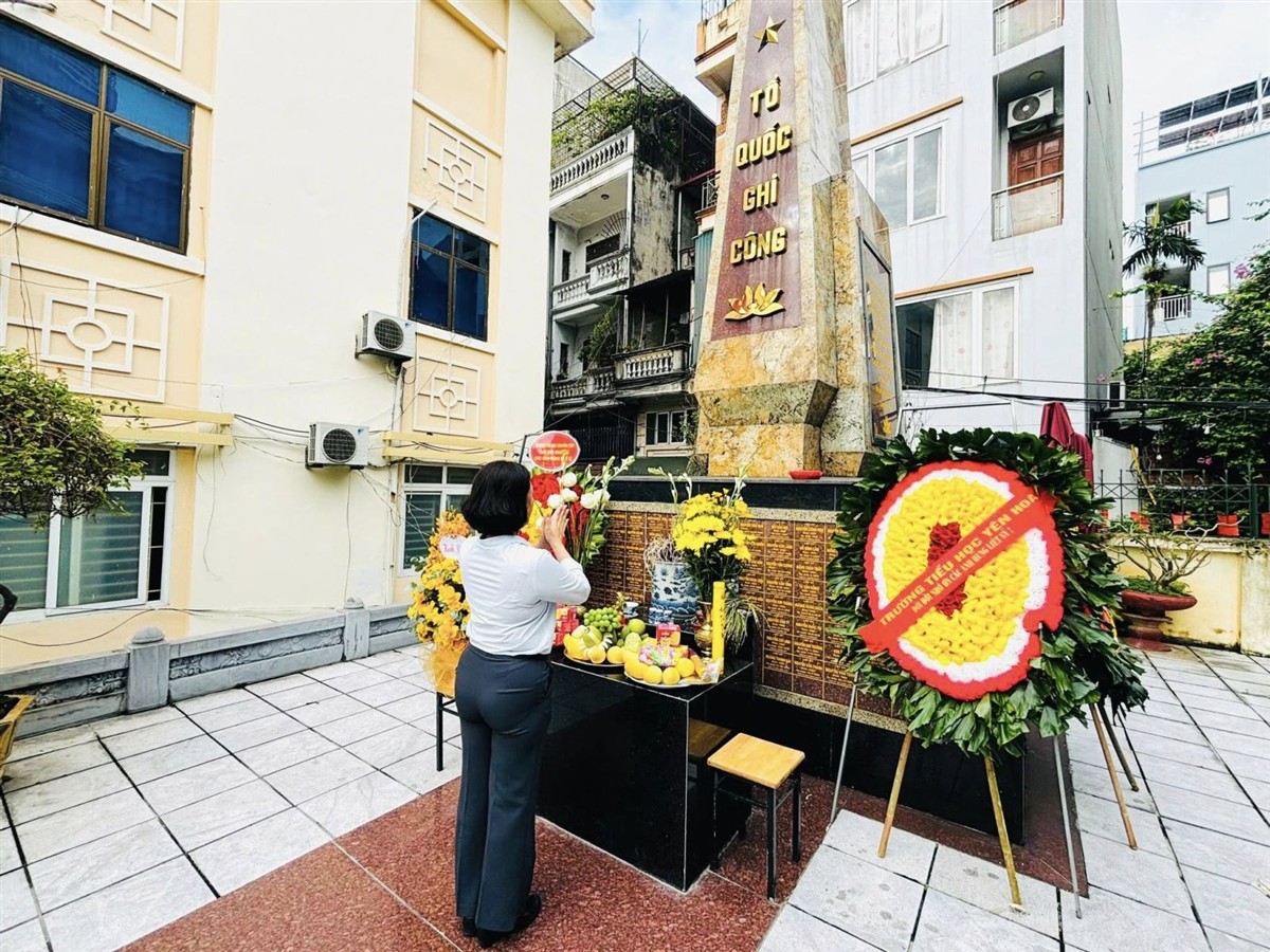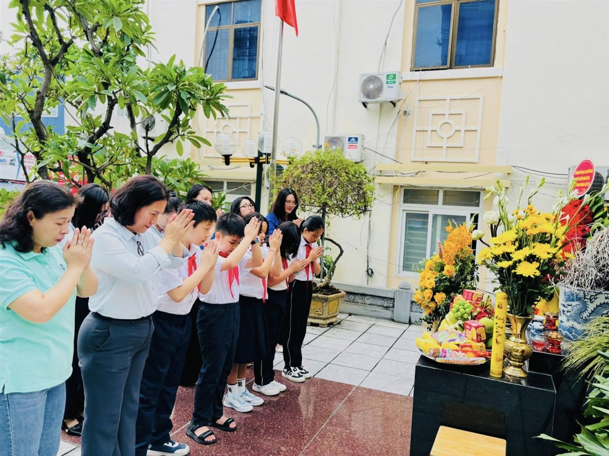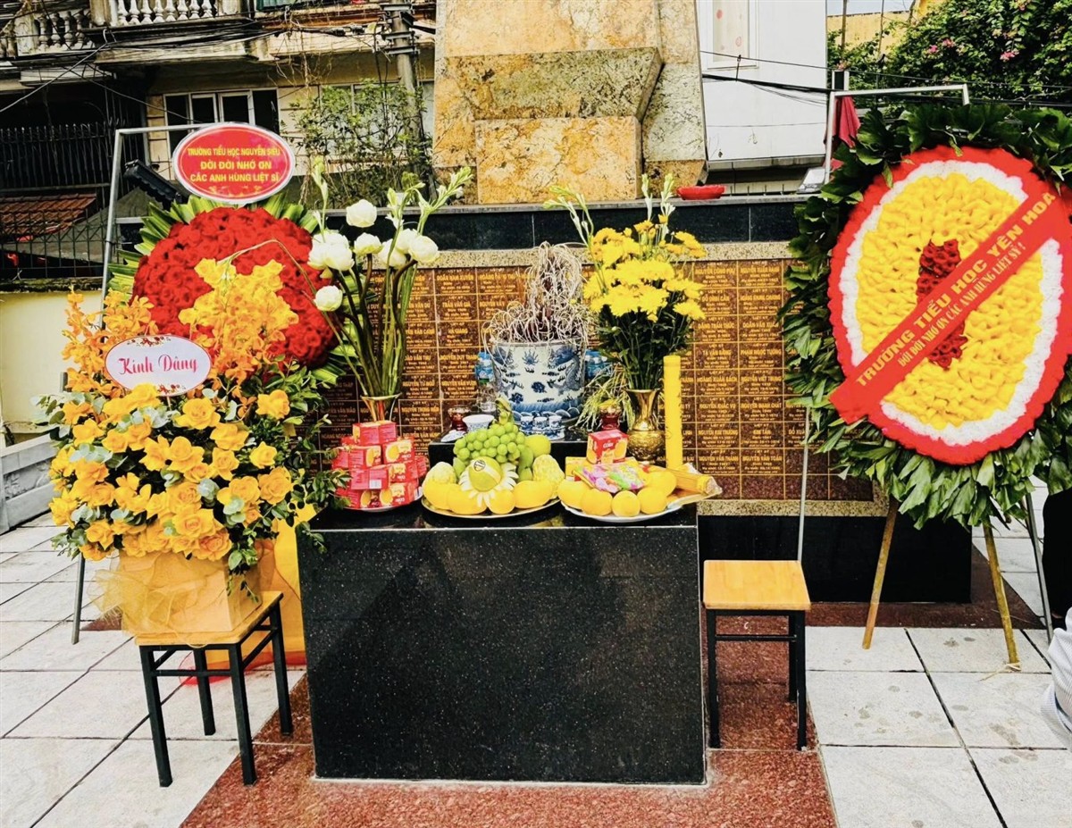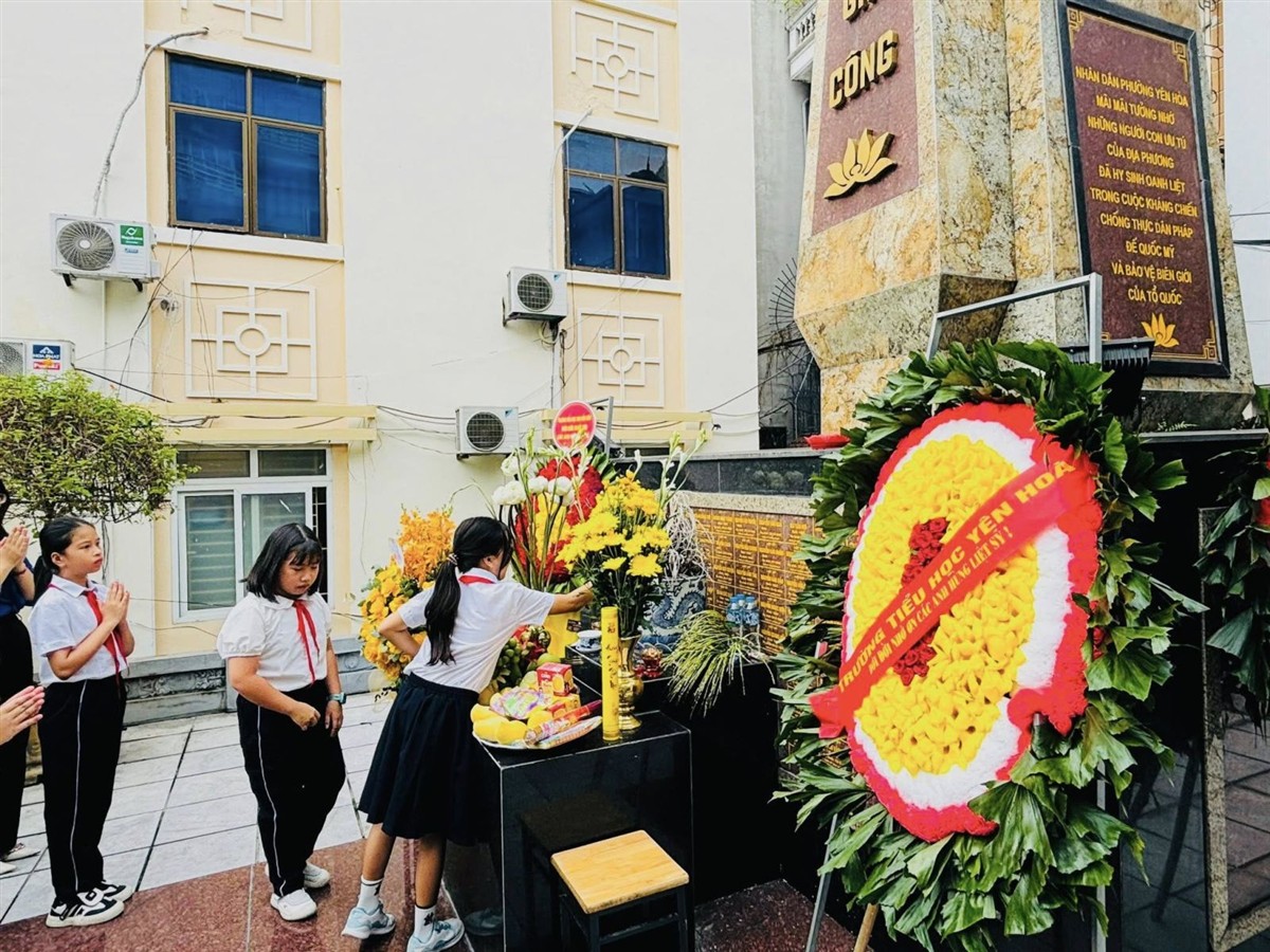 Tại Đài tưởng niệm liệt sĩ phường Yên Hoà, đại diện BGH, Công đoàn, Chi đoàn, giáo viên và học sinh của nhà trường cùng với đoàn đại biểu phường đã dâng vòng hoa, thắp hương và dành một phút mặc niệm trang nghiêm. Tập thể nhà trường bày tỏ lòng biết ơn sâu sắc đến các thế hệ cha anh đã cống hiến cả cuộc đời cho sự nghiệp xây dựng và bảo vệ Tổ quốc.