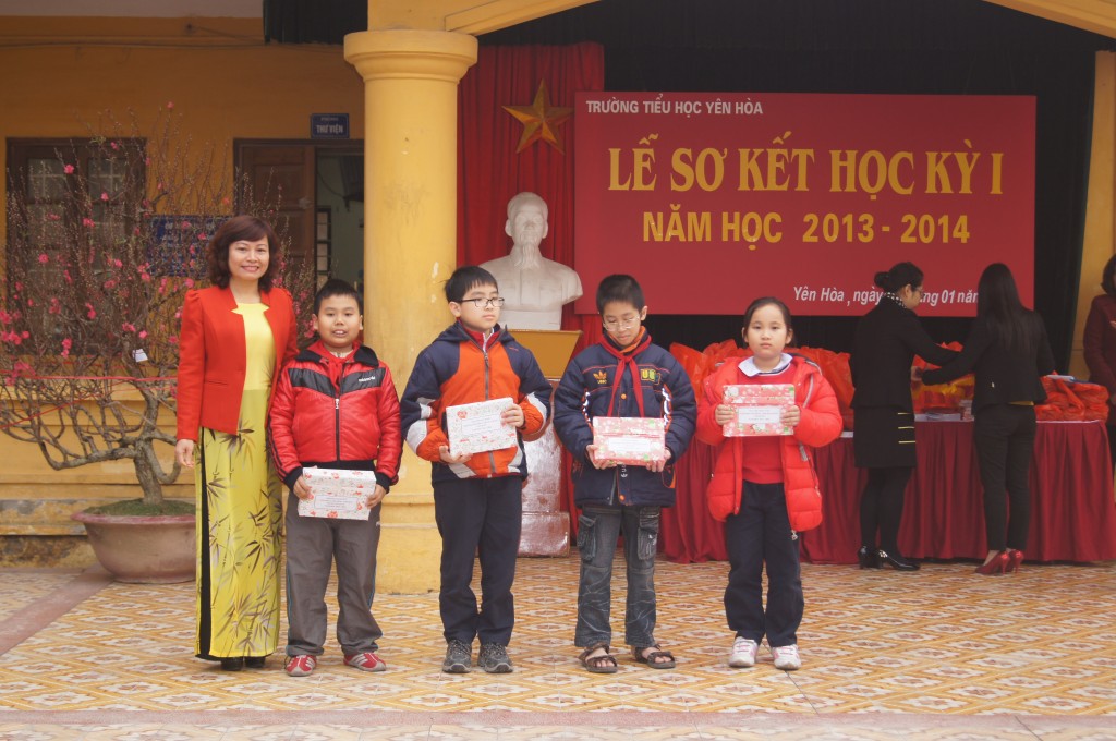 Sáng 20/1/2014 trường tiểu học Yên Hòa đã long trọng tổ chức lễ sơ kết Học kì I năm hoc 2013-2014 và trao quà Tết cho những học sinh có hoàn cảnh khó khăn, vượt khó vươn lên nhằm động viên tinh thần giúp các em có một cái Tết thật vui, ấm áp và ý nghĩa.