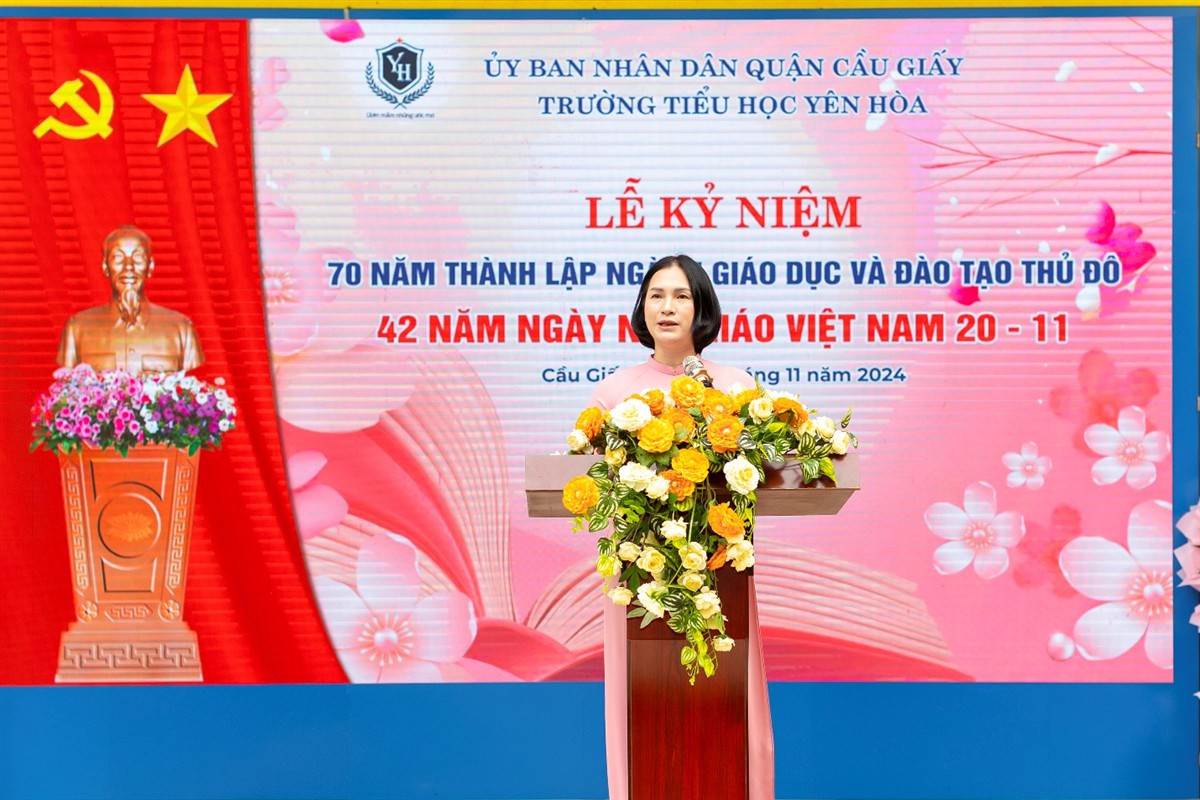 Trong không khí xúc động, Hiệu trưởng Trường Tiểu học Yên Hòa Đào Thị Thúy chia sẻ: Với phương châm “Tiểu học Yên Hòa – Nơi ươm mầm những ước mơ”, những năm qua, nhà trường đã không ngừng phấn đấu, nâng cao chất lượng để xây dựng hình ảnh của trường Tiểu học Yên Hòa thêm rạng rỡ, góp phần xứng đáng vào sự phát triển của ngành GD&ĐT Cầu Giấy nói riêng của của ngành GD&ĐT Thủ đô nói chung. Kết thúc năm học 2023 – 2024, trường được tặng danh hiệu “Tập thể lao động xuất sắc” cấp thành phố.