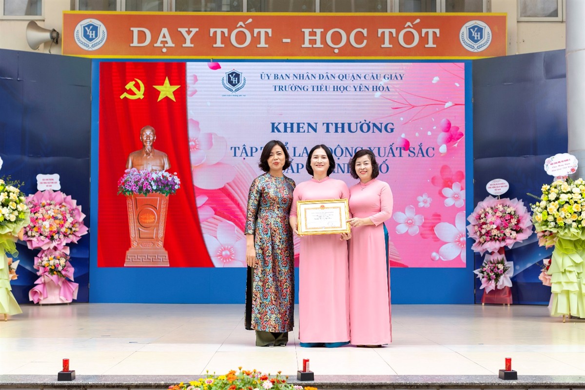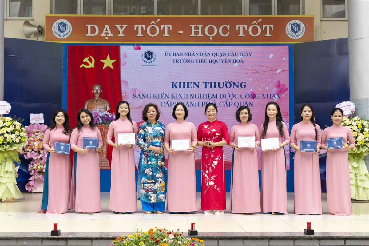 Tại buổi lễ, Đảng ủy, Ban Giám hiệu Trường Tiểu học Yên Hòa tôn vinh, biểu dương các nhà giáo có thành tích xuất sắc trong năm học 2023 - 2024; trong đó có nhiều nhà giáo đạt danh hiệu Chiến sĩ thi đua cơ sở; có nhiều sáng kiến kinh nghiệm; đạt giải cao tại Hội thi giáo viên dạy giỏi cấp quận cũng như phong trào thể dục thể thao do quận Cầu Giấy tổ chức.