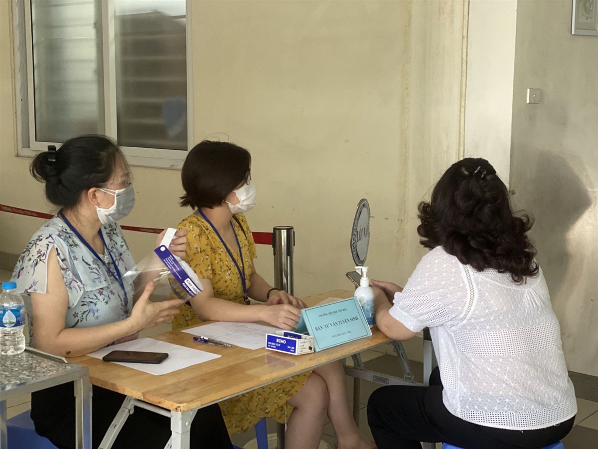 Toàn bộ công tác chuẩn bị đã được cán bộ, giáo viên, nhân viên nhà trường hoàn tất từ trước đó một ngày, đảm bảo bố trí khoa học, đủ khoảng giãn cách theo đúng quy định. Đội ngũ cán bộ tuyển sinh và các giáo viên làm công tác hỗ trợ được chia thành các nhóm ở cổng trường, ở khu vực tuyển sinh để điều phối, hướng dẫn PHHS thực hiện đúng khuyến cáo 5K của Bộ Y tế và được hỗ trợ một cách hiệu quả.