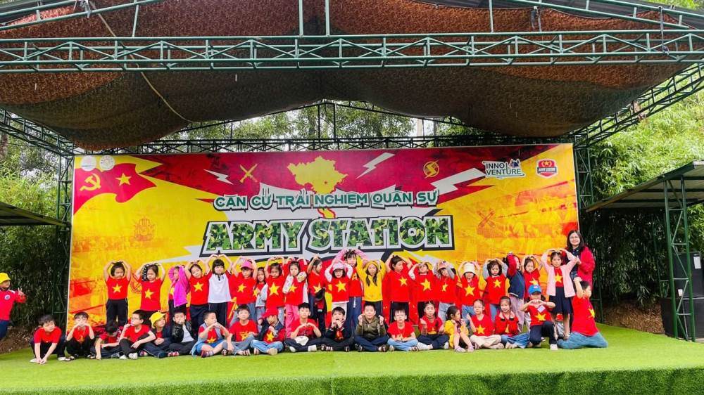 Học sinh Trường Tiểu học Yên Hòa trải nghiệm tại Army Station.