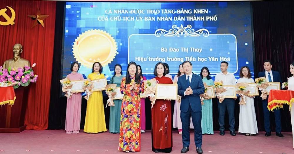 Cùng với thành tích chung của nhà trường, Nhà giáo Đào Thị Thúy – Hiệu trưởng Trường Tiểu học Yên Hòa – được Chủ tịch UBND thành phố Hà Nội tặng Bằng khen cá nhân “Đã có thành tích xuất sắc trong phong trào thi đua thực hiện nhiệm vụ công tác từ năm học 2023–2024 đến năm học 2024–2025”. Đây không chỉ là phần thưởng cho những nỗ lực của cá nhân cô, mà còn là sự khẳng định về năng lực quản lý, sự tận tụy với nghề và tấm lòng yêu thương học trò của người đứng đầu nhà trường.