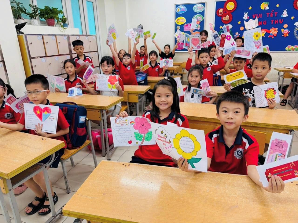 Trong các tiết hoạt động trải nghiệm tại lớp, không khí trở nên rộn ràng với những đôi tay khéo léo và trái tim đầy yêu thương. Học sinh đã tự tay làm thiệp, vẽ tranh, viết lời chúc để bày tỏ tình cảm chân thành gửi tới cô giáo, mẹ, bà, chị và các bạn nữ thân thiết. Mỗi sản phẩm đều là thông điệp yêu thương giản dị nhưng chứa đựng cảm xúc trong sáng, chân thành của các em.