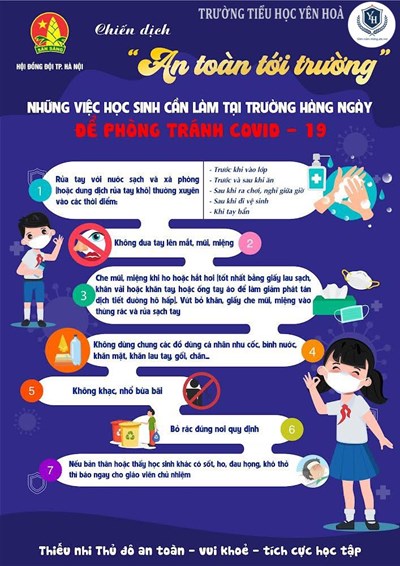 Bên cạnh không khí rộn ràng, tươi vui, nhằm đảm bảo an toàn cho học sinh, công tác phòng, chống dịch được trường Tiểu học Yên Hoà triển khai thực hiện hết sức khẩn trương, nghiêm túc.