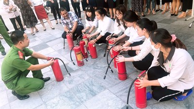 Sau phần phổ biến lý thuyết, dưới sự hướng dẫn của các cán bộ nghiệp vụ Phòng Cảnh sát PCCC&CNCH, cán bộ, giáo viên và nhân viên nhà trường đã được thực hành cách sử dụng các phương tiện chữa cháy tại chỗ như bình bột chữa cháy, bình chữa cháy bằng khí CO2 để dập tắt đám cháy, cách xử lý khi rò rỉ khí gas và cách thức xử lý nhanh các tình huống có thể xảy ra.