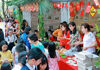 Tái hiện ngay tại sân trường một không gian phiên chợ quê vô cùng sống động, mộc mạc mà thân thương với các gian hàng gồm nhiều chủ đề như gian hàng Nông sản Việt, Gian hàng ẩm thực, Gian hàng ngành nghề truyền thống, gian hàng đồ chơi… Mỗi tổ một gian hàng với đủ các mặt hàng phục vụ đời sống hàng ngày, cô trò và cha mẹ học sinh chung tay trang trí sáng tạo, bày bán. Trong phiên chợ các em còn được tham gia vào các trò chơi như cướp cờ, bịt mắt đánh trống, ô an quan, cờ vua, cờ tướng.